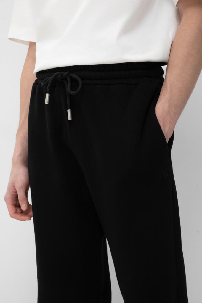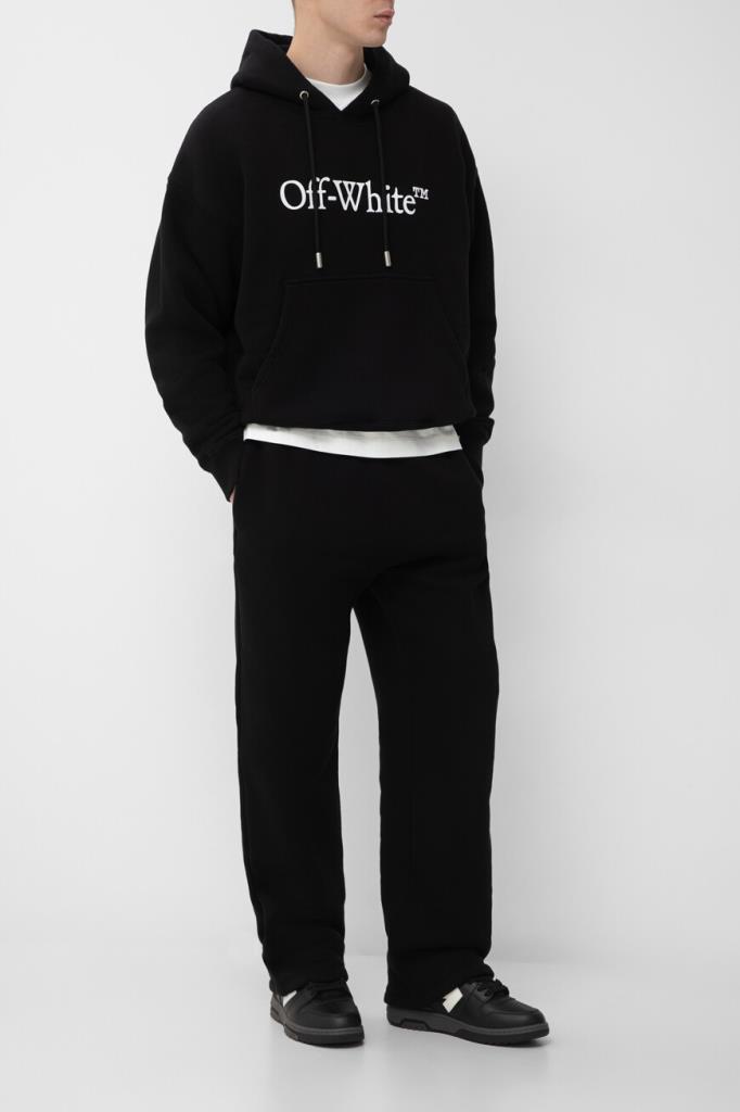 Спортивные брюки чёрного цвета от Off-White. Для создания модели прямого силуэта используется мягкий хлопковый трикотаж. Принадлежность изделия Дому деликатно обозначена вышитой аббревиатурой названия - монограммой OW спереди слева в тон. Брюки можно носить в комплекте с худи с глубоким капюшоном на кулиске из той же коллекции.