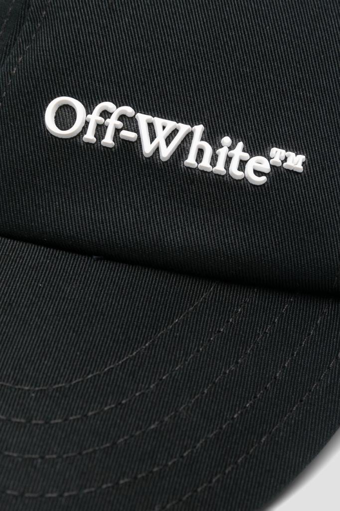 Хлопковая бейсболка Off-White с рельефной символикой Дома. Для изготовления базового аксессуара используется плотная ткань с диагональным саржевым (твиловым) переплетением. Тулья декорирована белым логотипом на контрастном фоне. Посадку модели с изогнутым широким козырьком позволяет регулировать ремешок со скользящим слайдером.