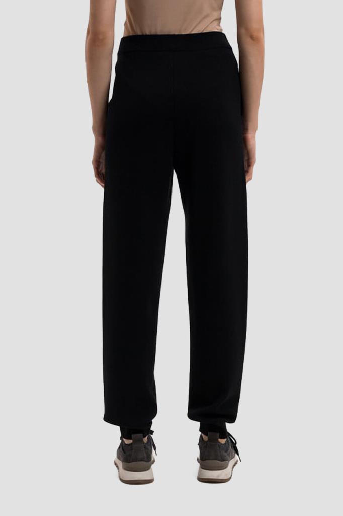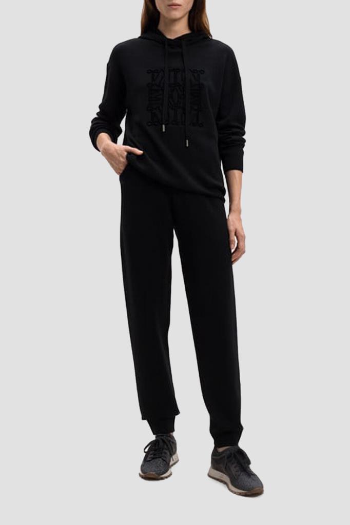 Брюки Max Mara с двумя прорезными карманами по бокам. Для создания модели в спортивном стиле используются мягкая шерсть, нейлон и прочное вискозное волокно. Широкий эластичный пояс и манжеты-резинки обеспечивают оптимальную посадку изделия по фигуре. Брюки можно сочетать с худи с глубоким капюшоном на кулиске из той же коллекции Дома.