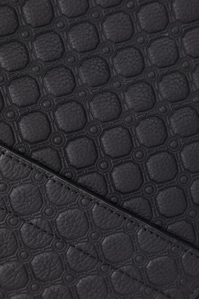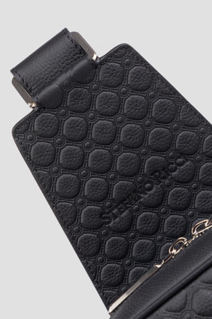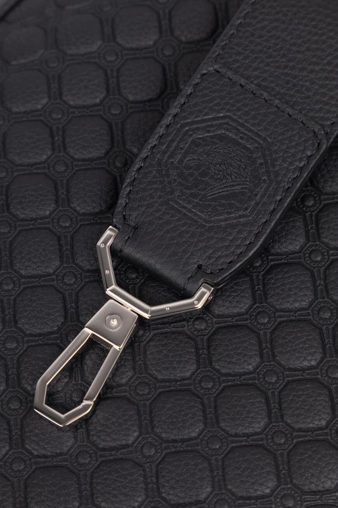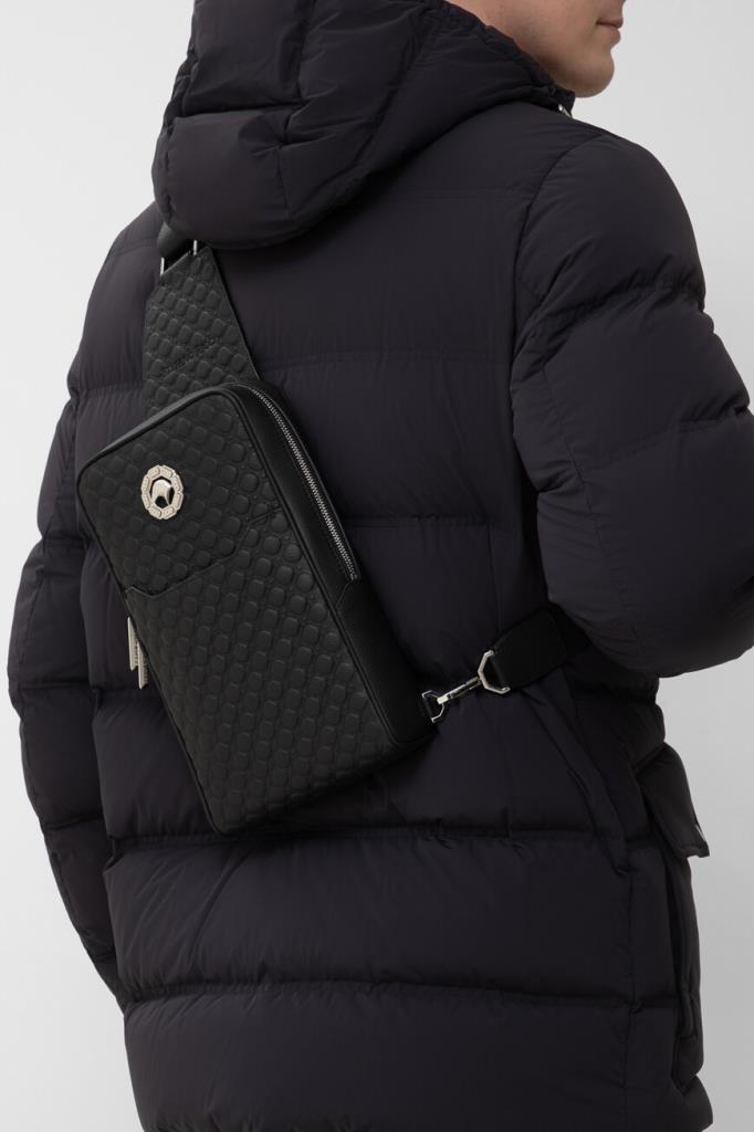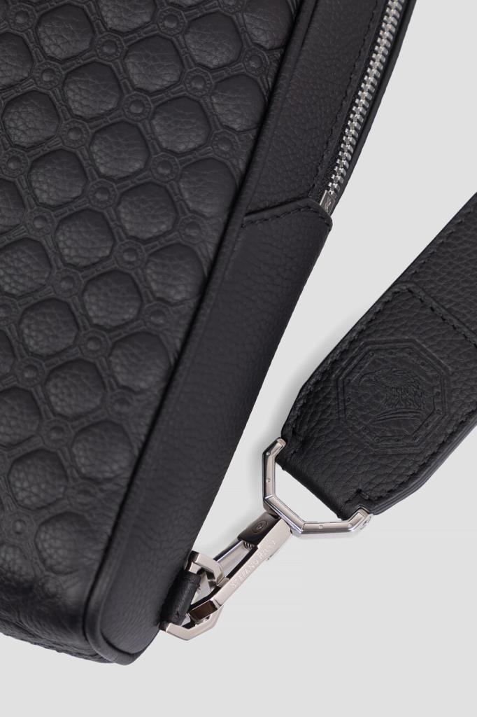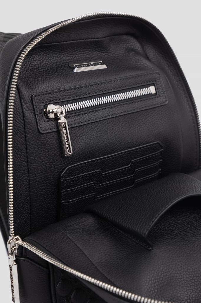 Рюкзак кросс-боди от Stefano Ricci выполнен вручную. Для создания функциональной модели чёрного цвета выбрана матовая телячья кожа. Изделие украшают фактурный геометрический узор в тон и серебристая знаковая символика Дома - голова орла в восьмиграннике спереди. Аксессуар с просторным внутренним отделением застёгивается молнией с двумя брендированными пуллерами и отличается наличием широкого плечевого ремня для переноски с двумя вариантами крепления.