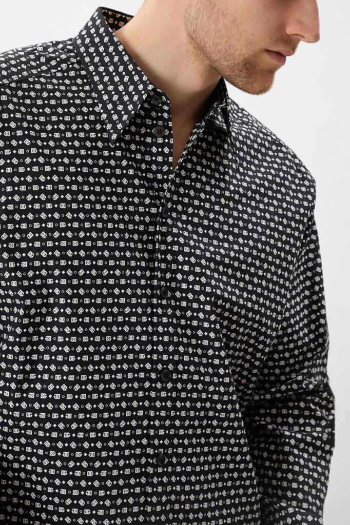 Рубашка Dolce & Gabbana станет основой повседневного образа. Для изготовления модели чёрного цвета используется мягкий хлопковый трикотаж с принтом в виде повторяющегося лого-монограммы бренда. Мягкая, приятная на ощупь хлопковая ткань хорошо пропускает воздух, а прямой крой не сковывает движения. Носите изделие с джинсами того же бренда.