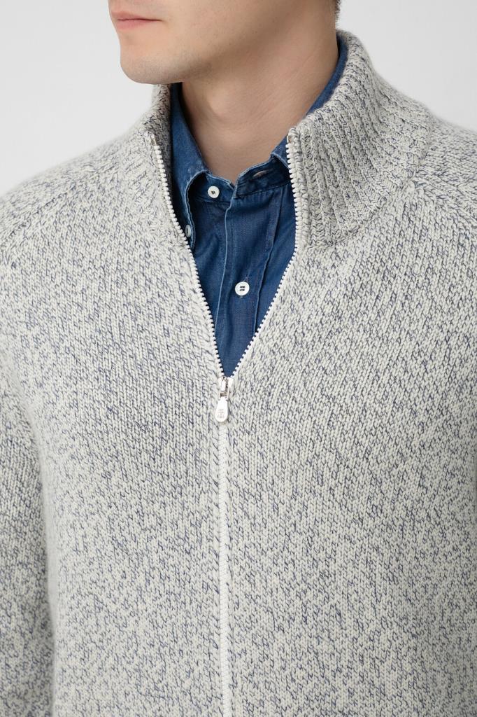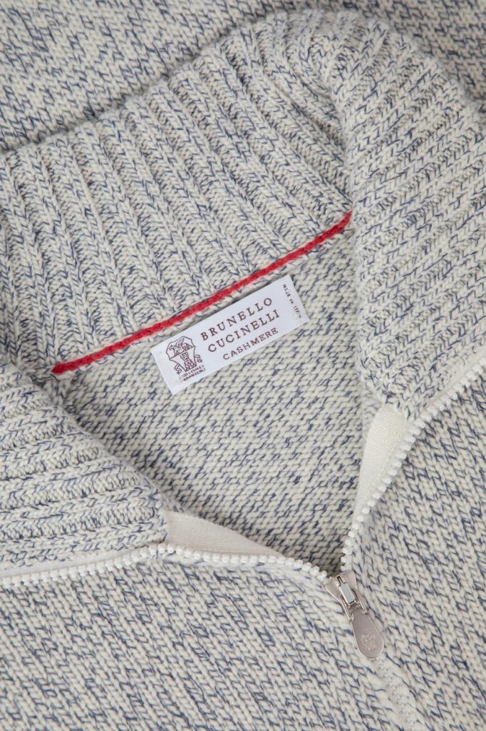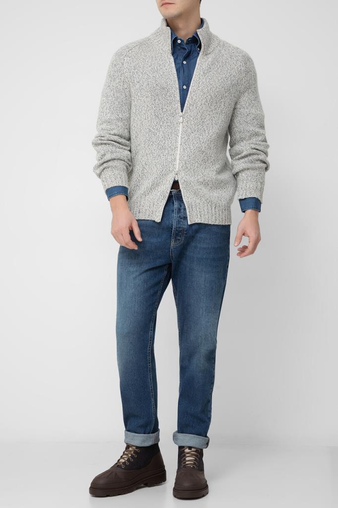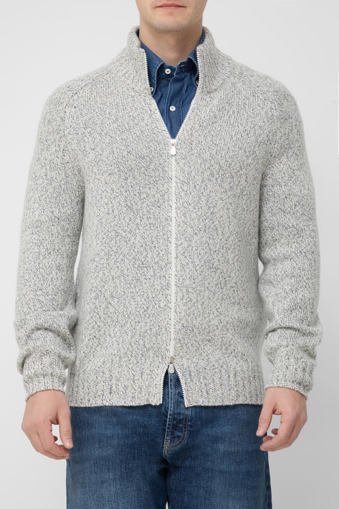 Трикотажный кардиган BRUNELLO CUCINELLI с невысоким воротником-стойкой. Изделие выполнено из мягкого кашемира mouliné средней плотности и оснащено застёжкой на белую молнию с двумя брендированными бегунками. Модель с длинными рукавами реглан станет идеальным дополнением Ваших образов.