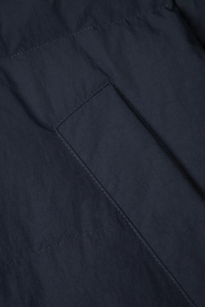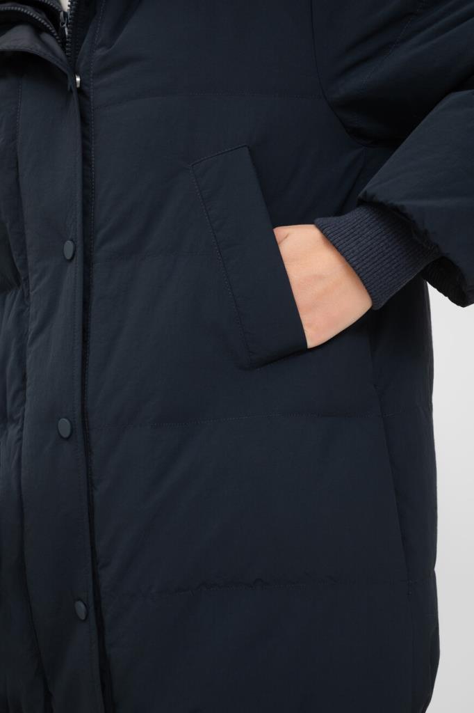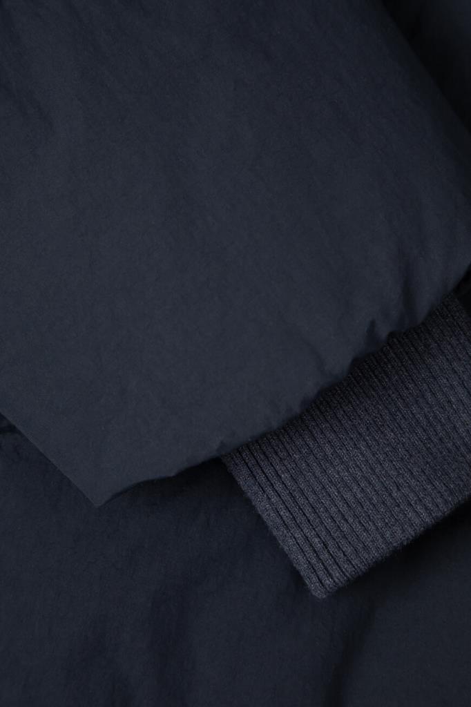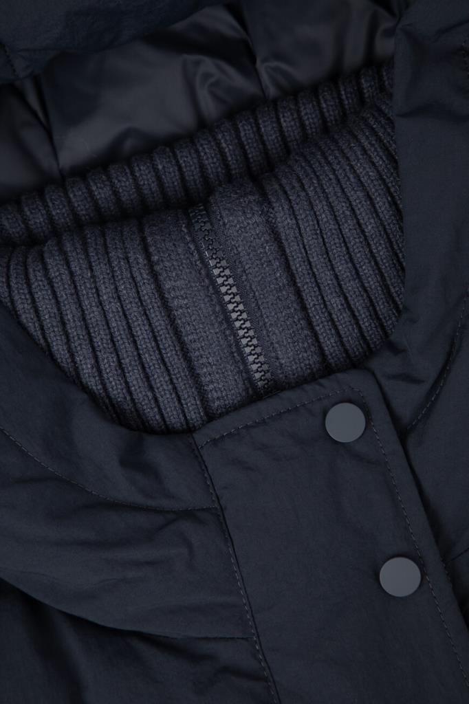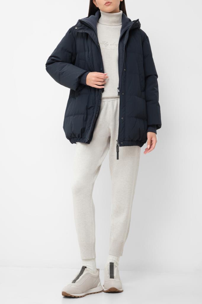 Куртка BRUNELLO CUCINELLI с утеплённой вязаной вставкой. Изделие выполнено из высокотехнологичного полотна на основе хлопка и прочного нейлона тёмно-синего цвета и оснащено застёжкой на потайную молнию и клёпки с планкой. Отделка позволяет защитить ткань от минимального контакта с водой. Дополнительный комфорт и защиту от непогоды обеспечивают глубокий капюшон, трикотажные манжеты-резинки и кулиска по нижнему краю. Утеплитель на основе натурального гусиного пуха и пера также гарантирует уют и тепло.