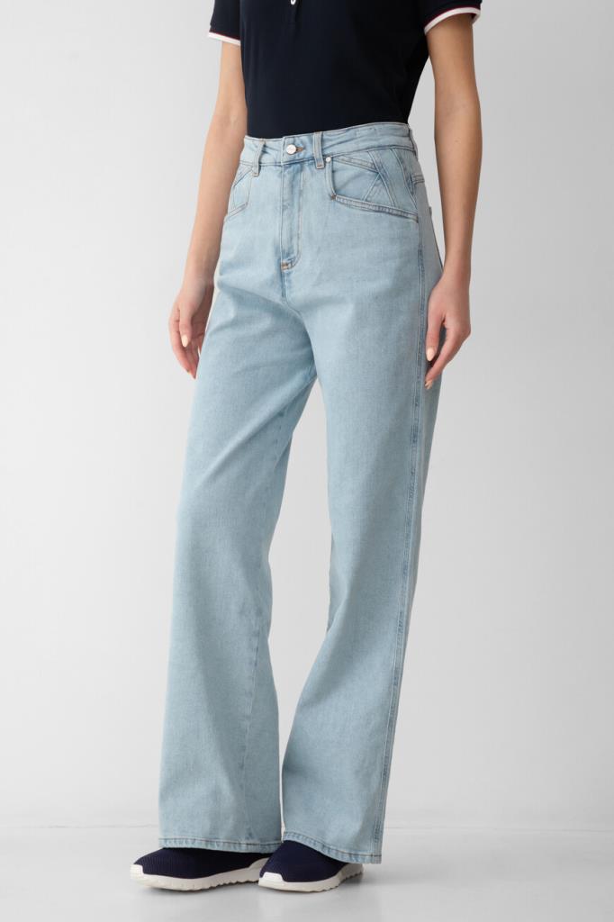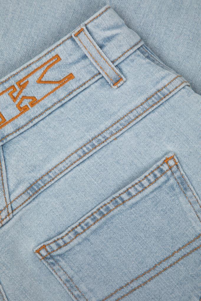 Джинсы Kiton с завышенной линией талии из плотного гладкого хлопка стрейч. Добавление небольшого количества эластичных волокон в состав материала обеспечивает непревзойдённый комфорт и удобство в носке. Изделие голубого оттенка выглядят так, словно выцвело под солнцем. Иллюзия сформирована выбеленным эффектом, сделавшим модель из мягкого японского денима средней плотности (в основе - тонкая ткань Kurabo из органического хлопка) более непринуждённой. Джинсы дополнены четырьмя карманами, два из которых акцентированы швами, сложенными в знаковую литеру «К». Отличительными особенностями изделия также являются брендирование на пуговице и оранжевая прострочка на швах.