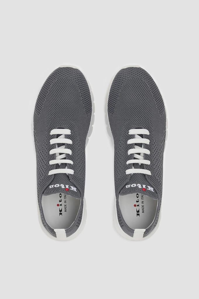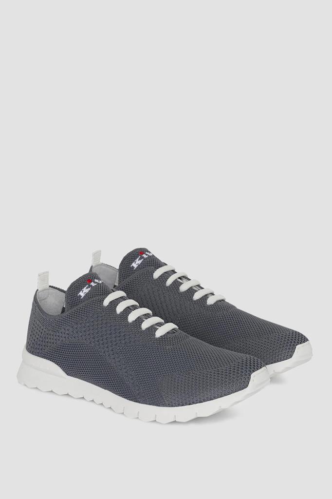 Серые сникеры Kiton FIT - это икона стиля и инноваций. Модель изготовлена из дышащего спортивного текстиля на основе хлопка стрейч с разными текстурами. Роль знакового декора отведена вышитому белому лого Дома на язычке и рельефной надписи-логотипу на прорезиненной накладке сзади. Отличительными особенностями изделия ручной работы стали наличие закрытого типа шнуровки и ленты для удобства надевания.