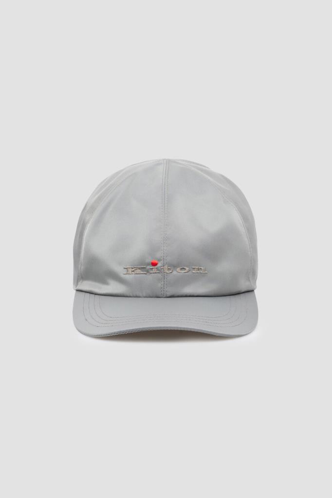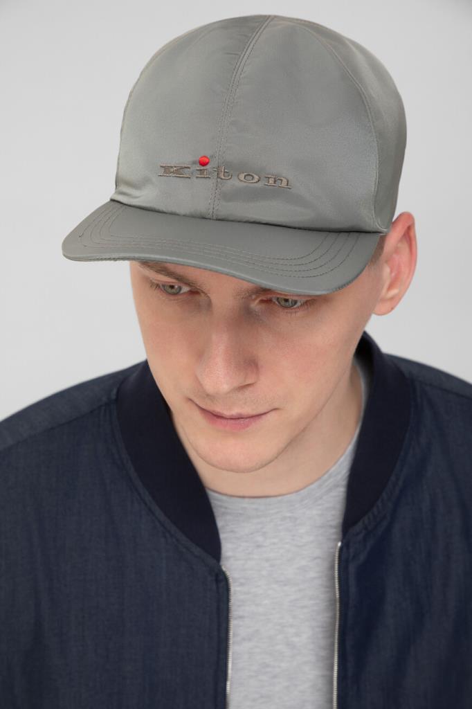 Серая бейсболка Kiton с крупным вышитым логотипом спереди по центру. Для создания традиционной шестиклинки выбран лёгкий прочный нейлон, устойчивый к порывам ветра и влаге. Посадка изделия на белой хлопковой подкладке регулируется ремешком на резинке.