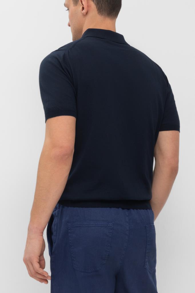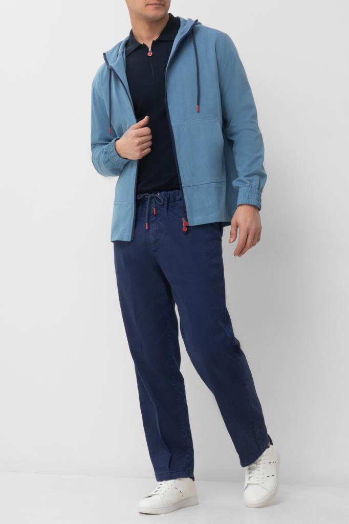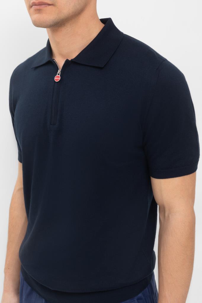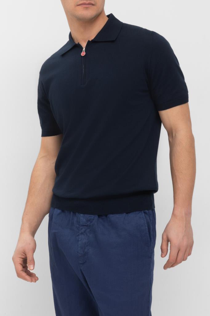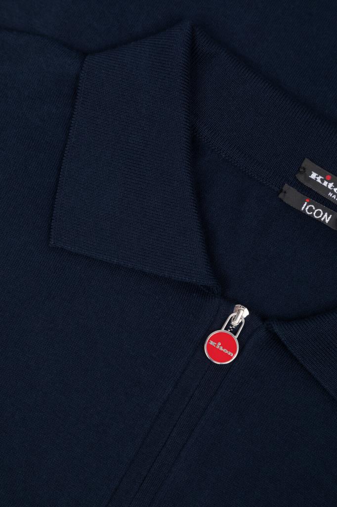 Поло Kiton Icon на молнии с брендированным эмалированным пуллером. Для создания изделия тёмно-синего цвета используется гладкий хлопковый трикотаж. Процесс изготовления модели состоит из 22 операций, половина из которых производится вручную. Оптимальную посадку поло по фигуре обеспечивают широкий эластичный пояс и манжеты-резинки. Изделие станет основой образа с брюками в спортивном стиле и олимпийкой с глубоким капюшоном на завязках из той же коллекции Дома.