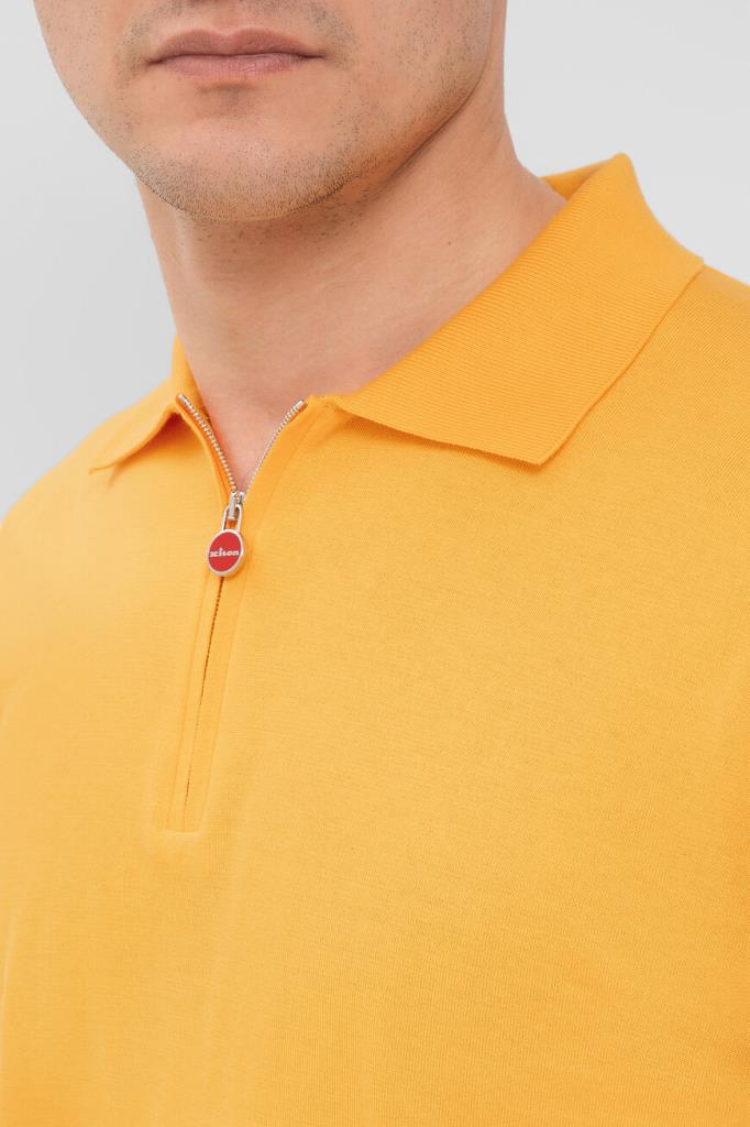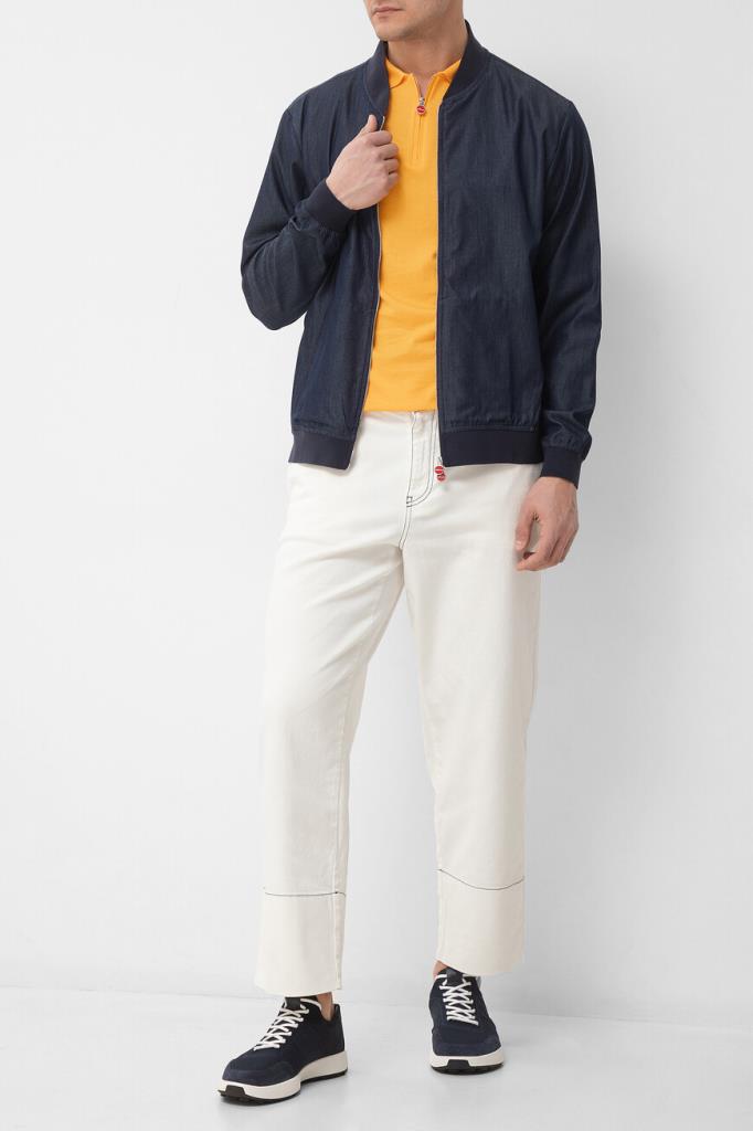 Яркое оранжевое поло Kiton, процесс создания которого состоит из 22 операций. Модель Icon прямого силуэта сшита по большей части вручную из мягкого трикотажа на основе длинноволокнистого хлопка. Нежный материал с гладкой поверхностью не подвержен пилингу, свободно пропускает воздух, а на ощупь напоминает шёлк. Для создания органичного комплекта носите изделие в тандеме с широкими джинсами из коллекции KNT и курткой с воротником-стойкой в стиле бомбера того же бренда.