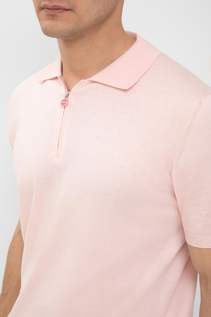 Поло Icon светло-розового оттенка от бренда Kiton. Модель изготовлена из мягкого хлопкового трикотажа и оснащена застёжкой на серебристую молнию с брендированным эмалированным пуллером. Отложной воротник, манжеты рукавов и широкий пояс подобраны на резинку для комфортной посадки.