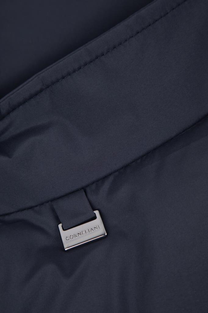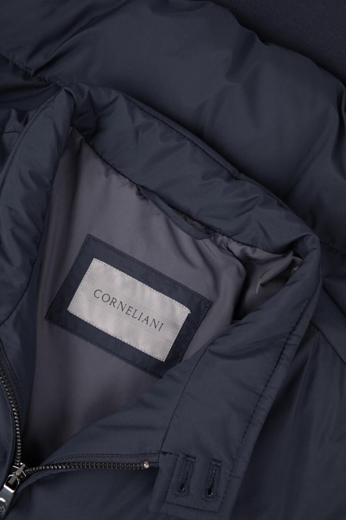 Бомбер тёмно-синего цвета от CORNELIANI со стёгаными рукавами и спинкой. Модель, изготовленная из прочного полиэфира, застёгивается на втречную молнию с двумя брендированными пуллерами. Дополнительный комфорт и удобство в носке обеспечивают широкий эластичный пояс и манжеты-резинки. Принадлежность изделия Дому обозначена серебристым лейблом с гравировкой сзади.
