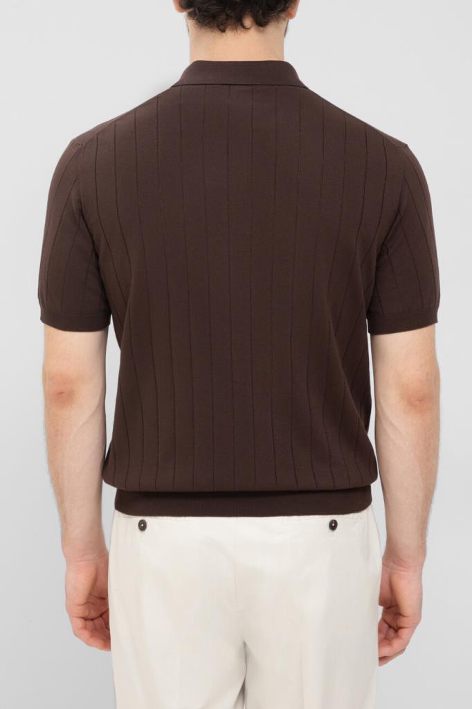 Трикотажное поло CORNELIANI будет уместно в офисе с нестрогим дресс-кодом. Модный дом разделяет философию прогресса и перемен, поэтому при создании капсульной коллекции CIRCLE бренд стремится к соответствию передовым методам, сертификатам и международным стандартам, регулирующим совместимость промышленных процессов. За комфорт в течение дня отвечает чистый премиальный хлопок тёмно-коричневого цвета. Лёгкий материал поддерживает оптимальный микроклимат и надолго сохраняет безупречный внешний вид. Декором выступает рифлёный геометрический узор в виде вертикальных полос в тон.