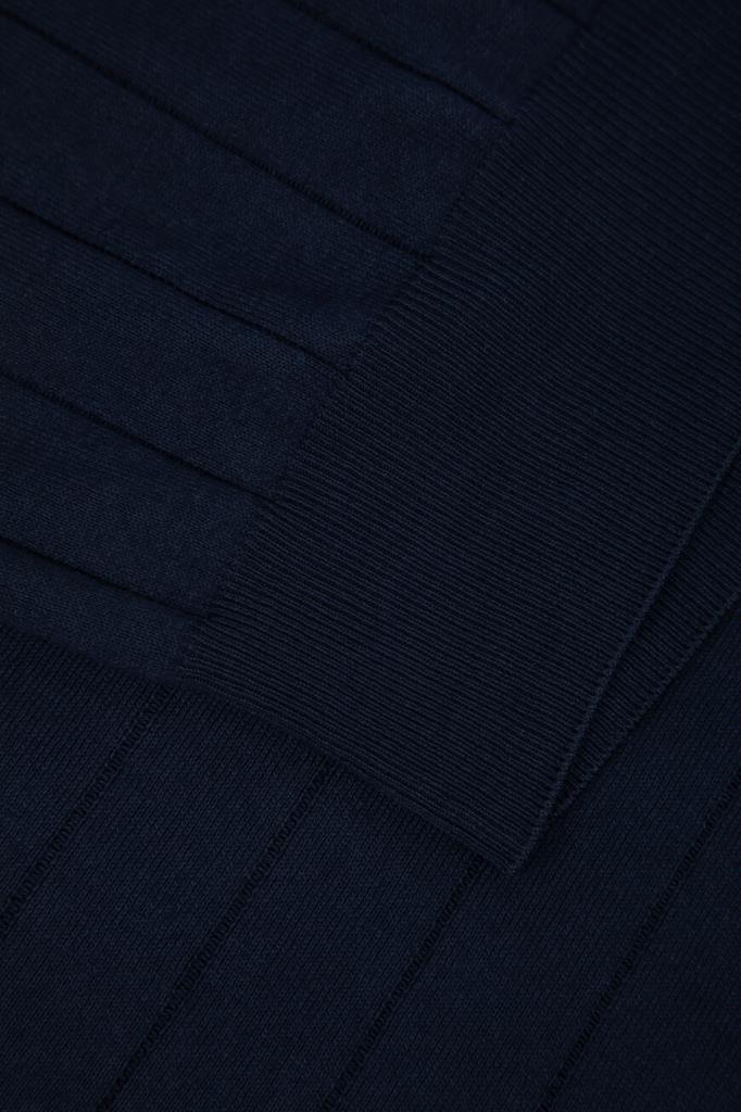 Прямое поло CORNELIANI из хлопкового трикотажа в широкую продольную полоску. При создании капсульной коллекции CIRCLE бренд стремился к соответствию передовым методам, сертификатам и международным стандартам, регулирующим совместимость промышленных процессов. Модель, окрашенная в глубокий тёмно-синий оттенок, застёгивается на брендированные роговые пуговицы сверху и отличается наличием коротких рукавов. Оптимальную посадку изделия по фигуре обеспечивают широкий эластичный пояс и манжеты-резинки. Поло станет источником вдохновения для создания множества casual-комплектов.