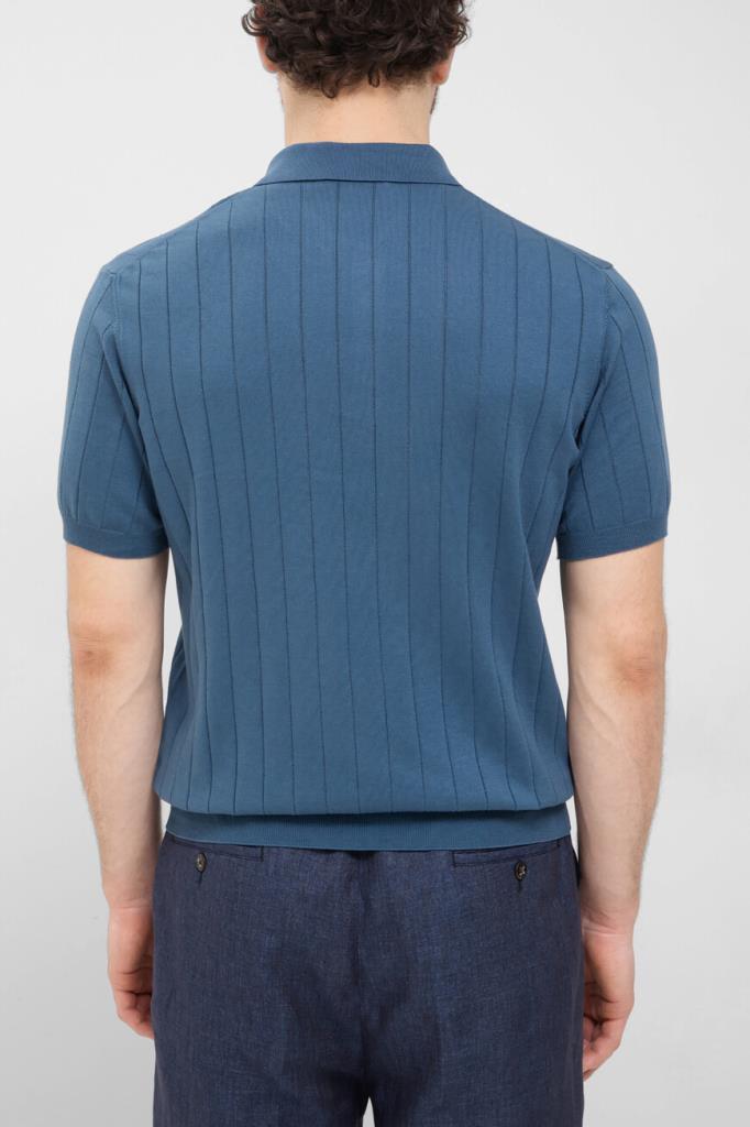 Синее поло CORNELIANI с короткими рукавами. Изделие из капсульной коллекции CIRCLE выполнено из чистого премиального хлопка, обеспечивающего максимальный комфорт при носке. Поверхность модели прямого силуэта покрыта фактурным геометрическим мотивом в виде вертикальных полос в тон. Универсальный дизайн позволяет легко сочетать поло с различными элементами мужского гардероба, что делает изделие оптимальным выбором как для повседневных, так и для более формальных случаев.