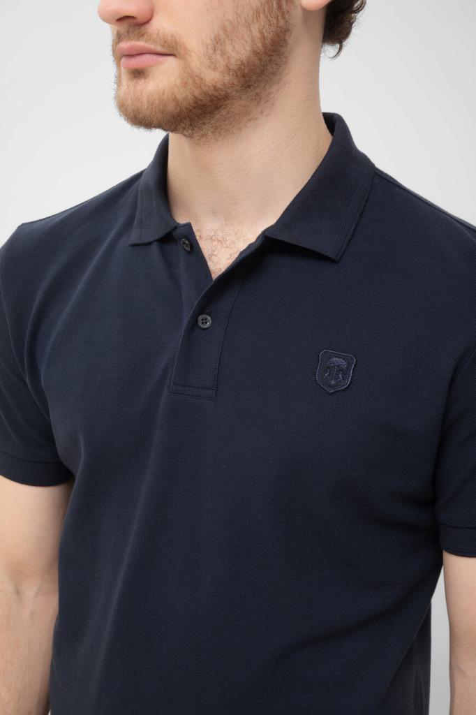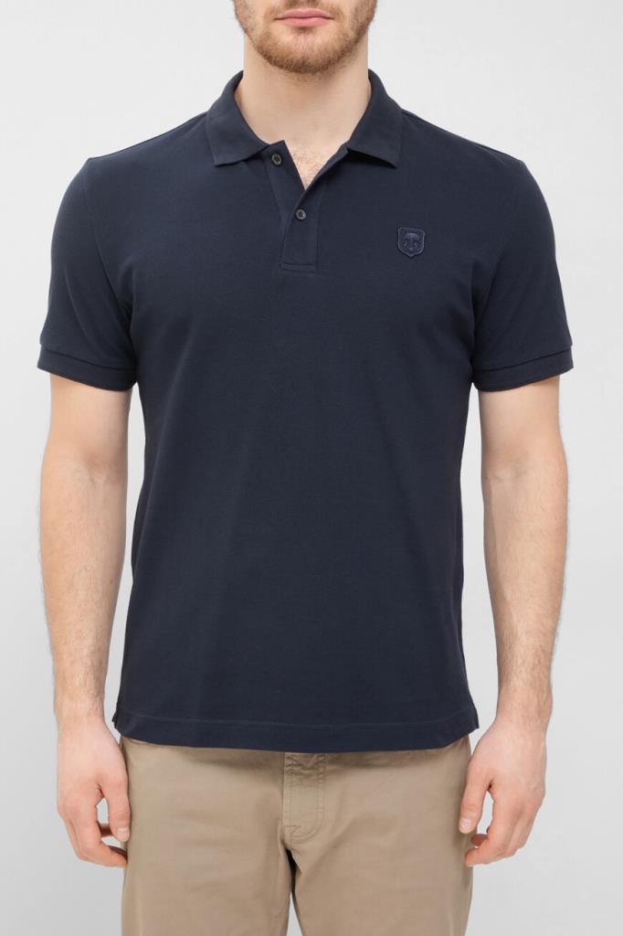 Хлопковое поло прямого силуэта от CORNELIANI. Модель выполнена из фактурного трикотажа-пике тёмно-синего цвета. Плотный, но дышащий материал обеспечивает комфортную терморегуляцию и практически не мнётся. Изделие с рельефной эмблемой-гербом слева на груди сможет стать компаньоном как для карго или джинсов, так и для более строгих брюк.
