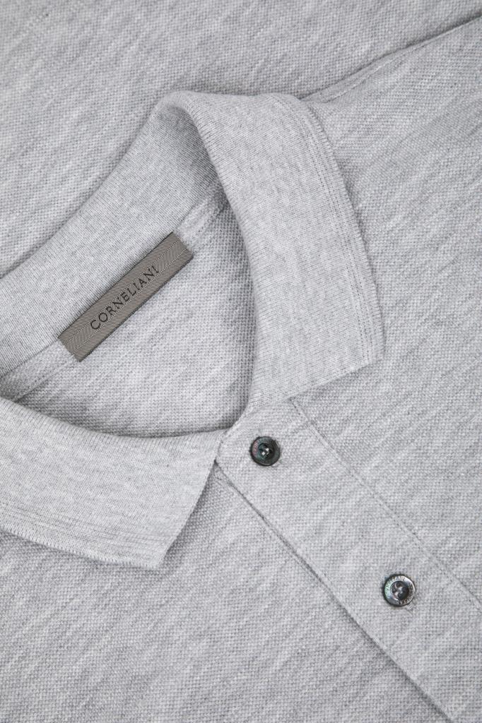 Поло CORNELIANI выполнено в нейтральном сером оттенке. Для создания повседневной модели выбран мягкий хлопковый трикотаж-пике. Этот лёгкий материал с фактурной текстурой пропускает воздух, отводит влагу и тянется лучше обычного джерси, поэтому в изделии будет комфортно весь день. Роль знакового декора передана рельефной эмблеме-гербу слева на груди. Отложной воротник и манжеты рукавов оснащены полосатым кантом.