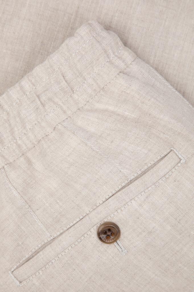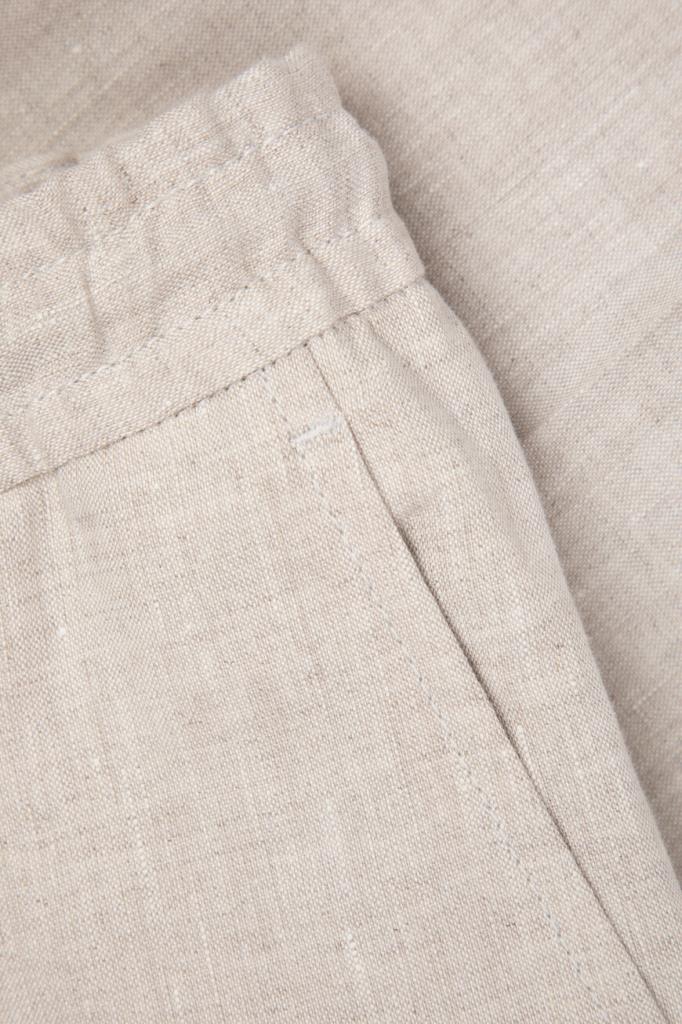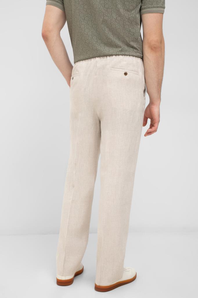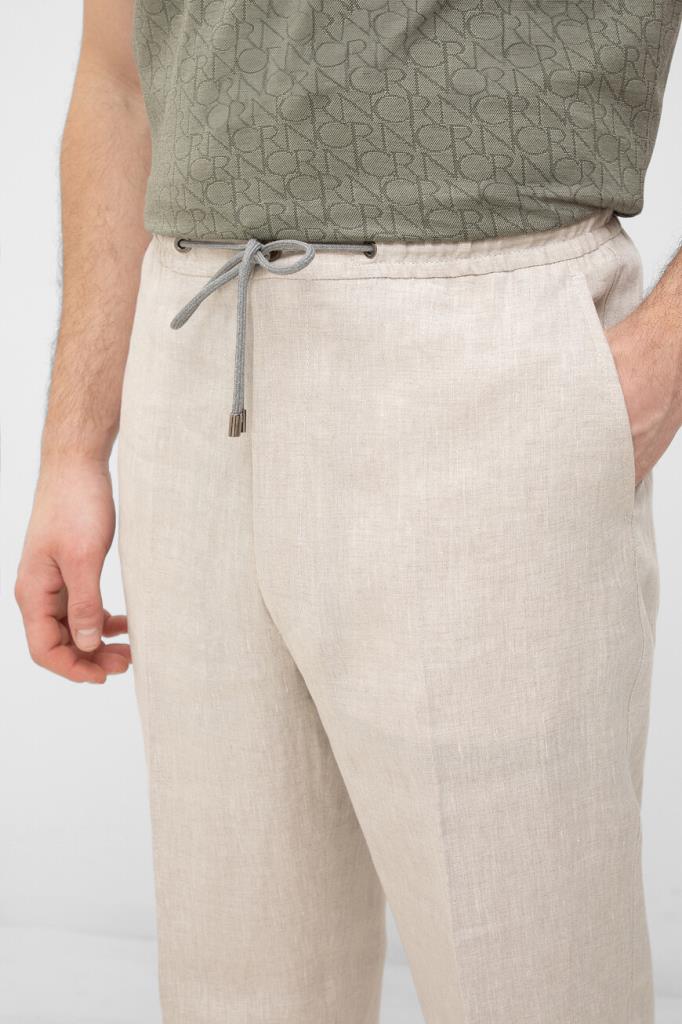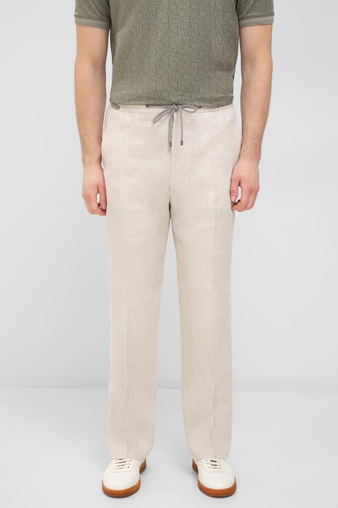 Льняные брюки CORNELIANI с классическими стрелками. Изделие окрашено в нейтральный светло-бежевый оттенок и оснащено плотным поясом с эластичной вставкой на серой кулиске и застёжкой на молнию, покрытую планкой, и роговую пуговицу для оптимальной посадки. Модель без знакового декора сможет стать основой casual-комплектов с поло из той же коллекции.