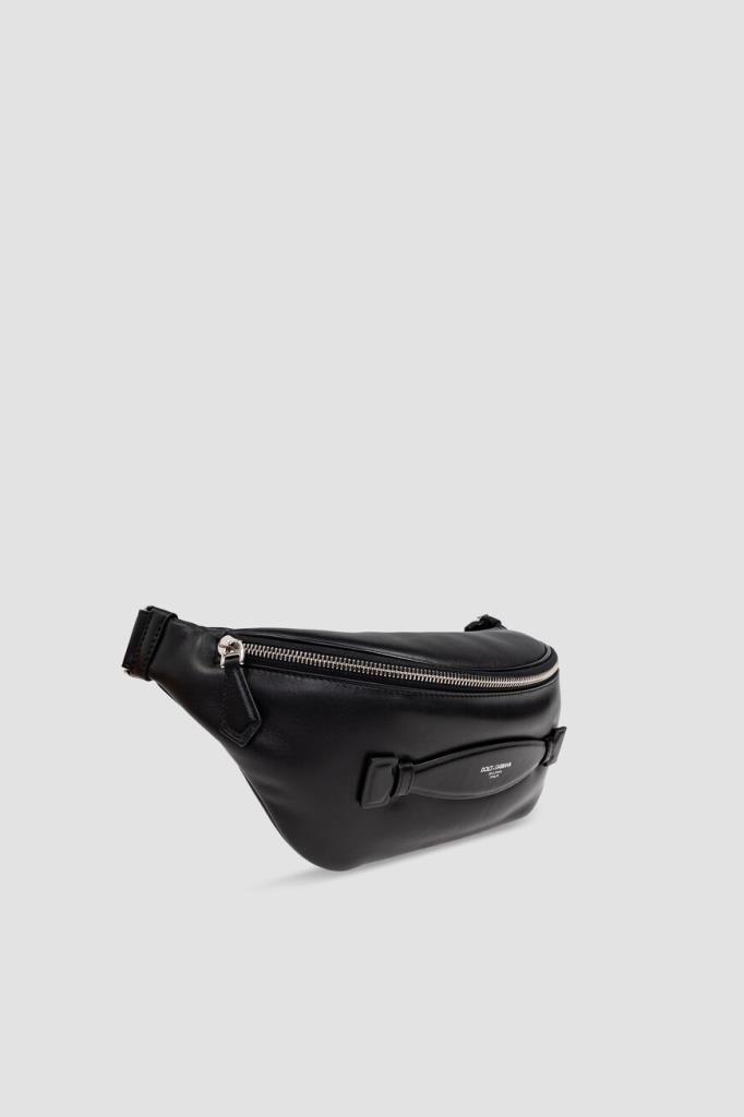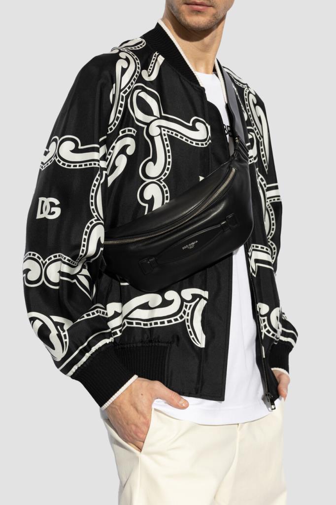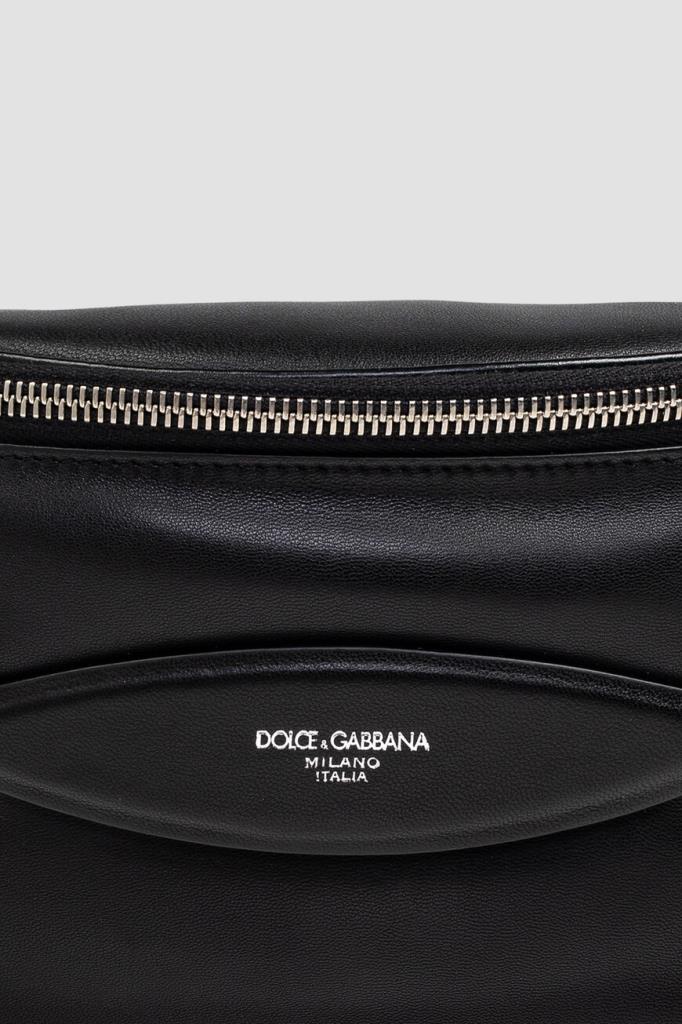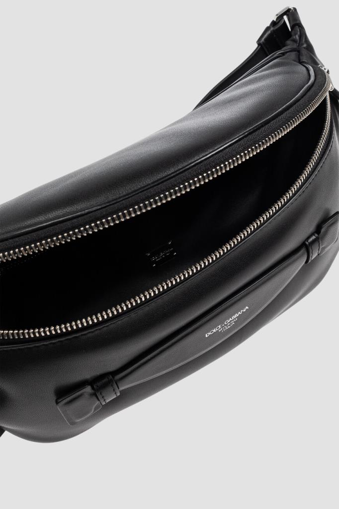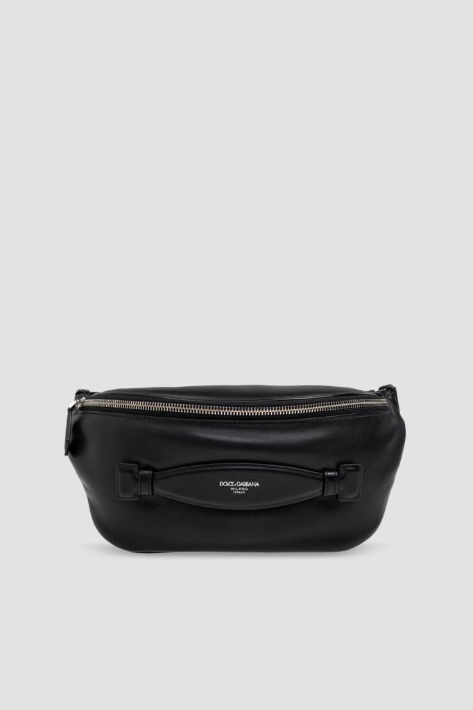Практичная поясная сумка из гладкой чёрной кожи наппа от DOLCE & GABBANA. Конструкция аксессуара предполагает классический округлый силуэт и наличие плоской брендированной ручки спереди. Для удобства переноски в изделии предусмотрен регулируемый кожаный ремень. Внутри расположены одно просторное отделение и плоский боковой карман на молнии с брендированием. Модель базового оттенка безупречно дополнит множество ансамблей.