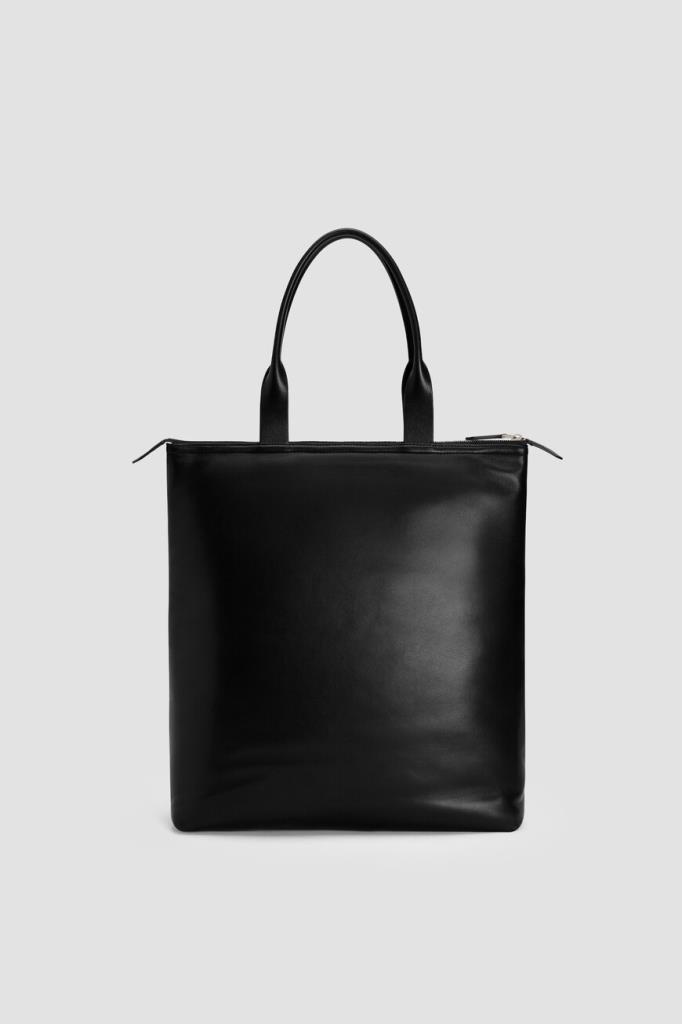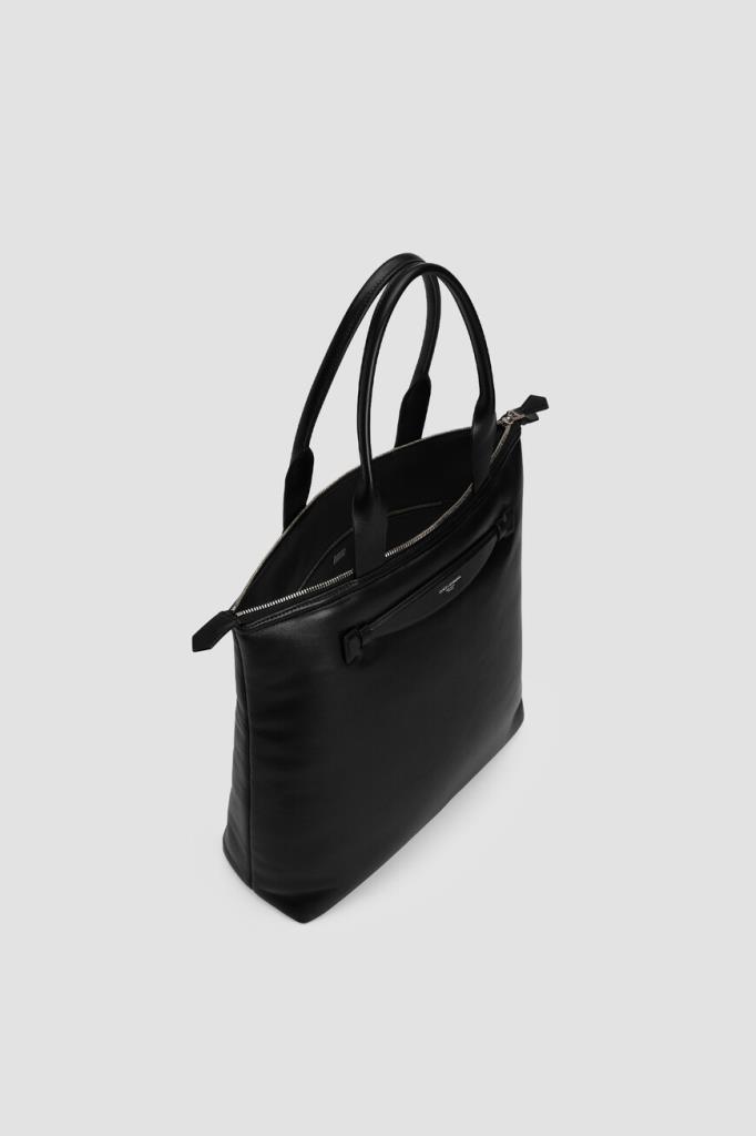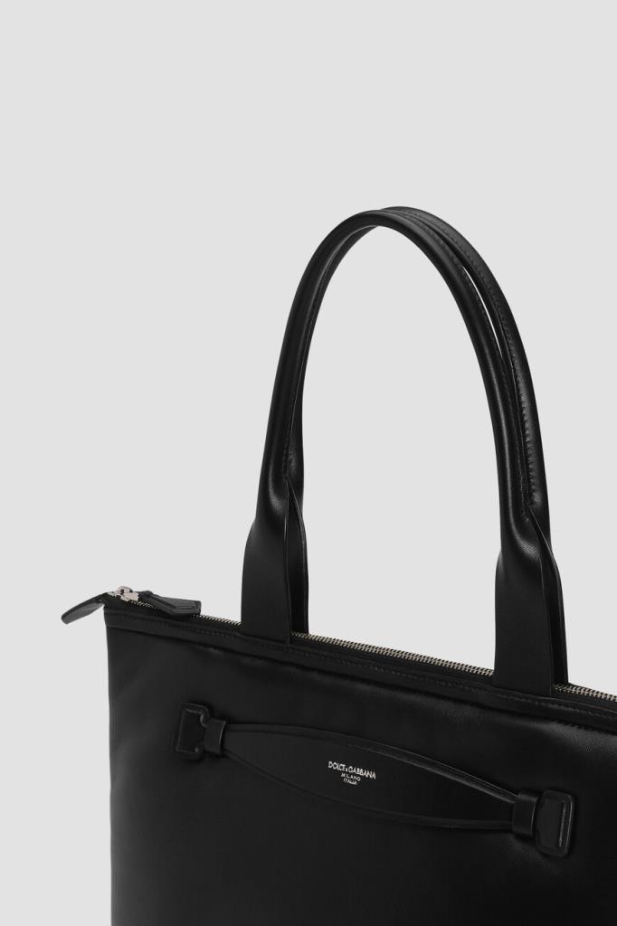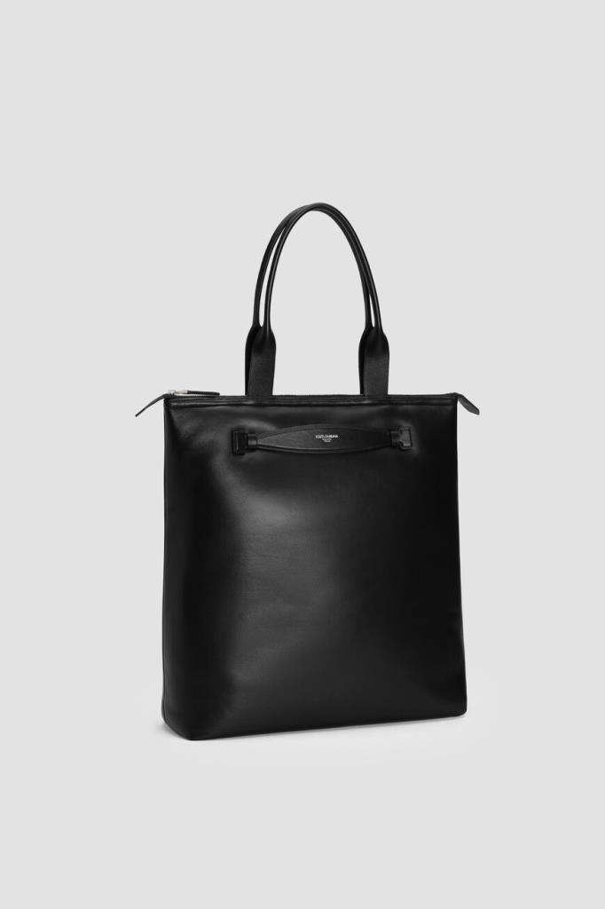 Сумка-шоппер Dolce & Gabbana с одним просторным внутренним отделением. Изделие выполнено из гладкой кожи наппа чёрного цвета и оснащено двумя округлыми ручками для переноски. Практичную модель можно сложить вдвое и носить в руке благодаря плоской брендированной ручке сбоку. Внутренняя часть сумки также выделана кожей ягнёнка и дополнена плоским боковым карманом на молнии с серебристым лейблом.
