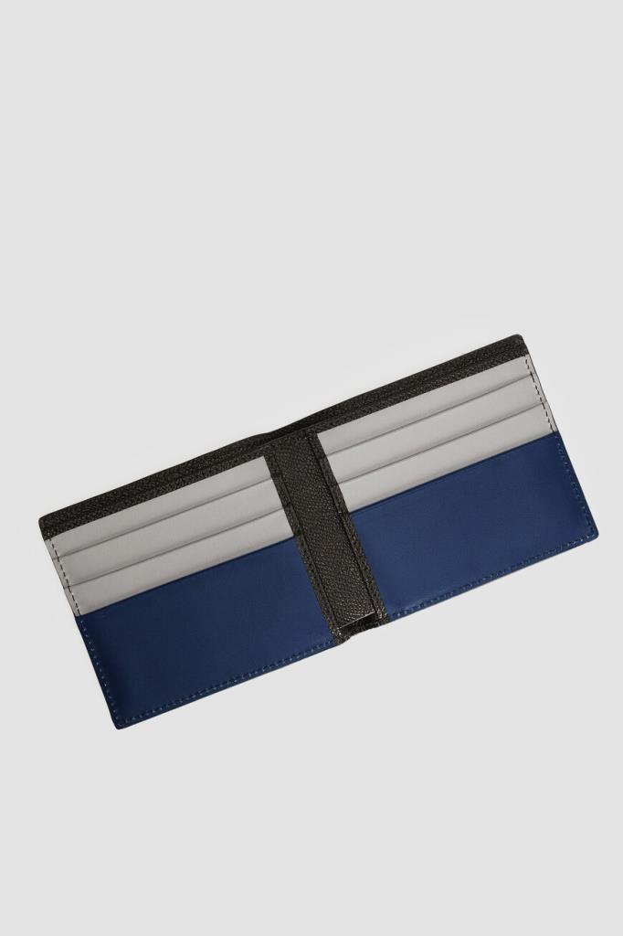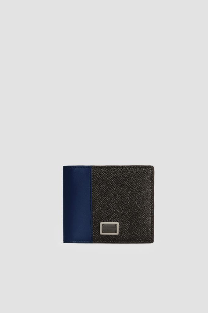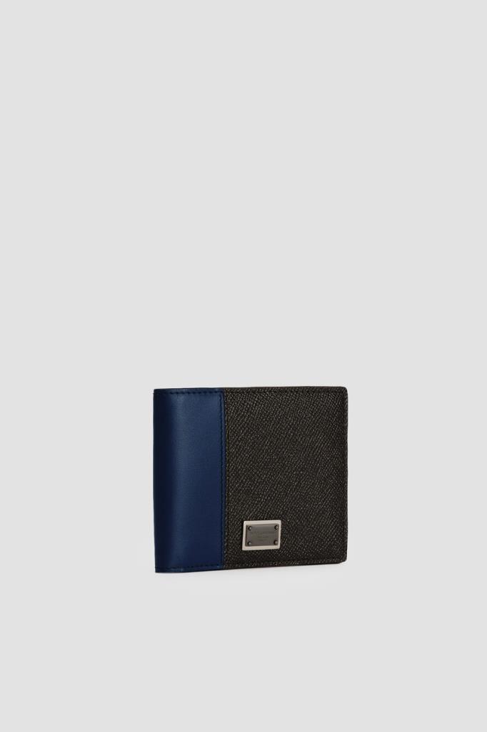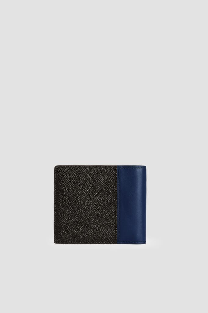 Практичный и компактный кошелёк Dolce&Gabbana выполнен в два сложения. Модель изготовлена из матовой кожи телёнка чёрного цвета с тиснением Dauphine, которое придаёт поверхности визуальную фактурность, и вставками из гладкой телячьей кожи тёмно-синего цвета на сгибе и светло-серого и тёмно-синего оттенков во внутренней части. Аксессуар отличается складной конструкцией и наличием шести слотов для кредитных карт.