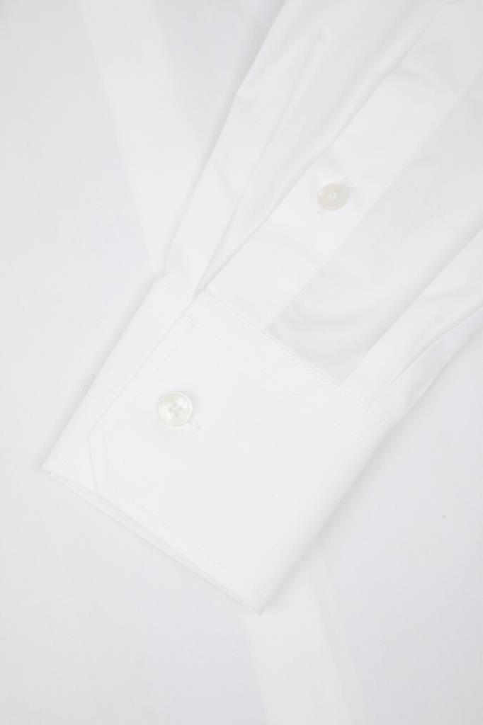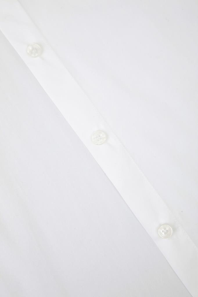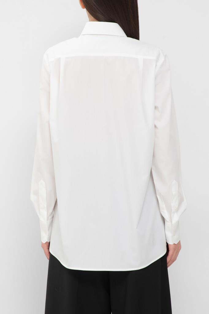 Поплиновая рубашка Dolce & Gabbana с длинными рукавами. Изделие сшито из чистого хлопка белого базового цвета и оснащено застёжкой на перламутровые пуговицы с выраженной планкой. Модель характеризуется свободным силуэтом по всей длине и закруглённым низом и органично сочетается с другими предметами женского гардероба.