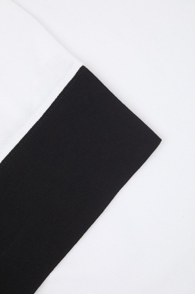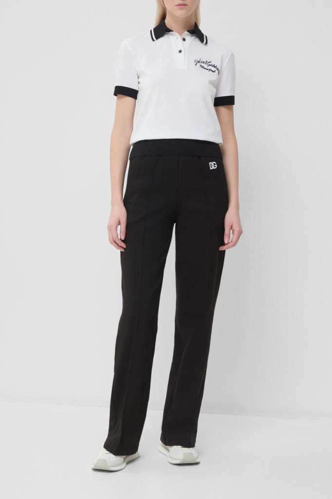 Поло Dolce&Gabbana с минималистичной знаковой символикой Дома. Фасон изделия белого цвета, изготовленного из мягкого хлопкового пике с характерной текстурой, предполагает прямой силуэт и наличие коротких рукавов. Отложной воротник, манжеты рукавов и пояс выполнены в контрастном оттенке и оформлены резинкой для оптимальной посадки. Слева на груди вышита дизайнерская надпись, отсылающая к бренду.
