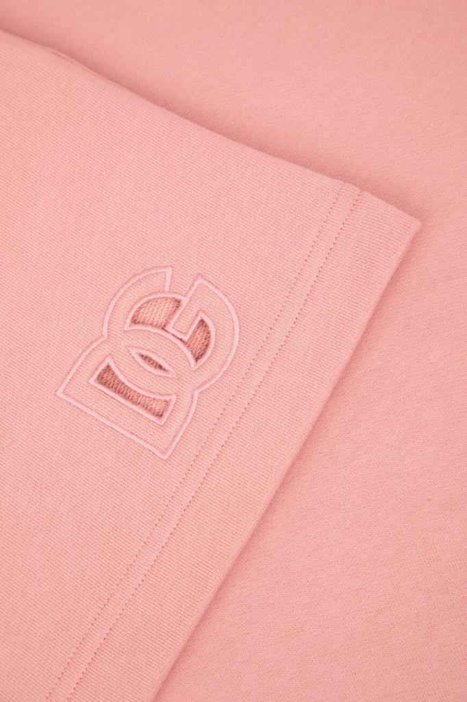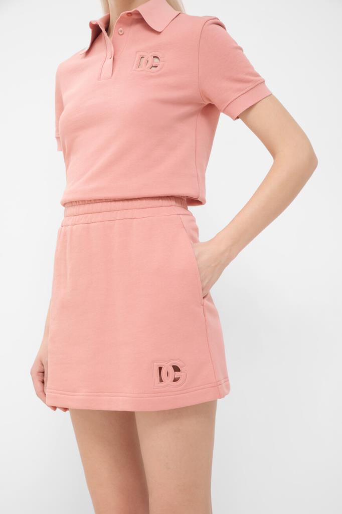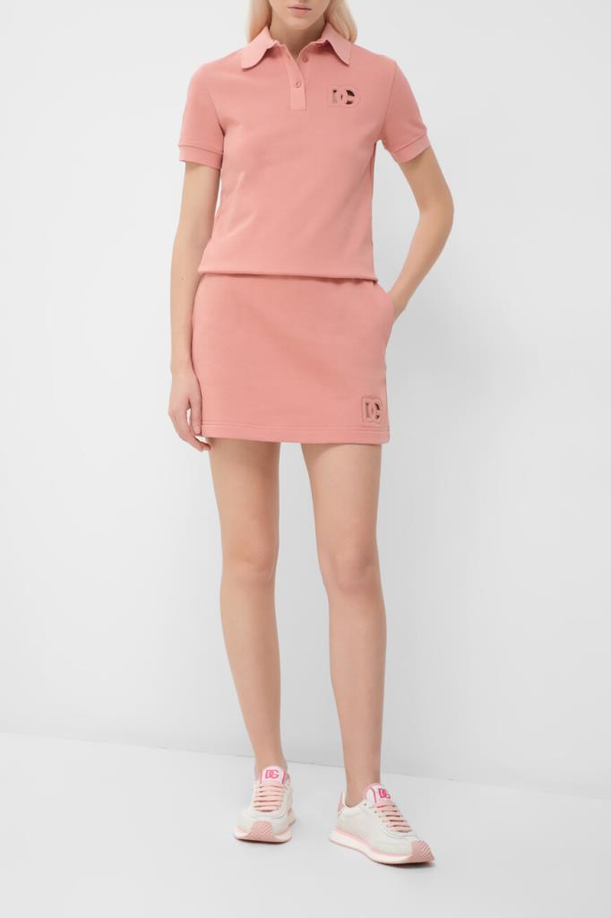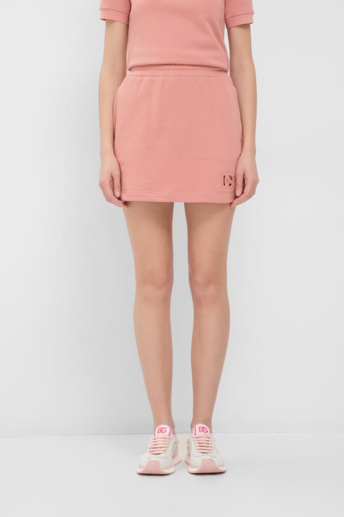 Спортивная мини-юбка Dolce & Gabbana выполнена в розовом оттенке. Фасон модели из мягкого хлопкового трикотажа характеризуется слегка расклешенным книзу силуэтом и наличием широкого эластичного пояса-резинки для комфортной посадки. Атрибутом Дома является крупный прошитый лого-монограмма с перфорацией в тон. Образ можно дополнить укороченным худи со спущенной линией плечевого шва из новой коллекции DNA.