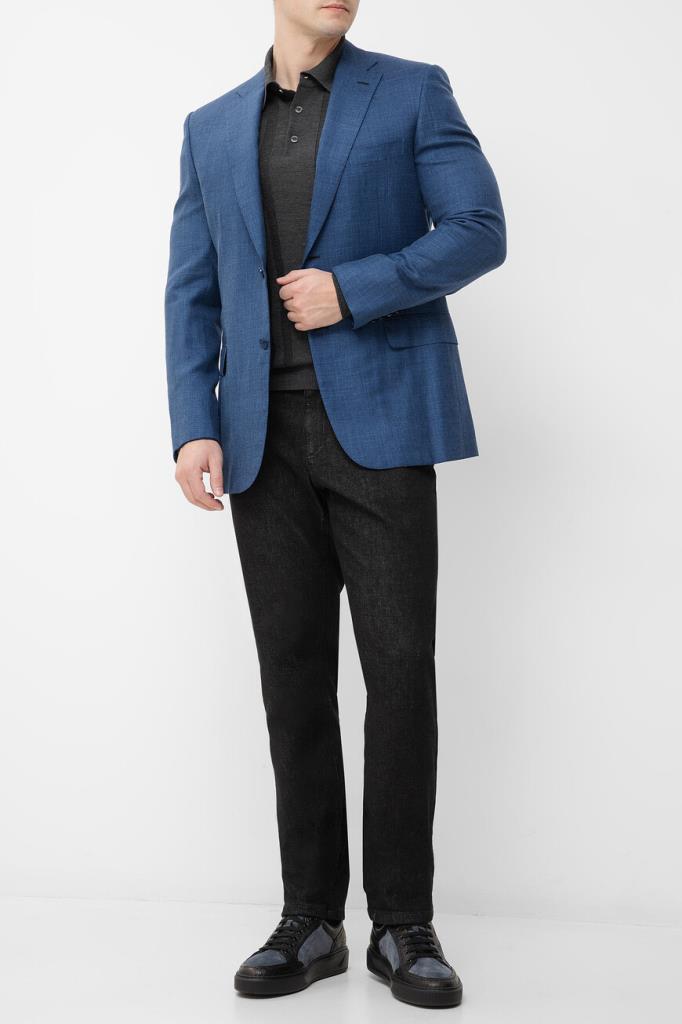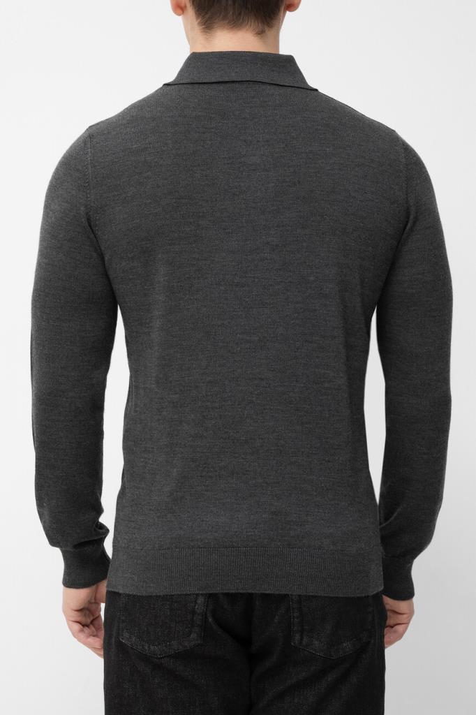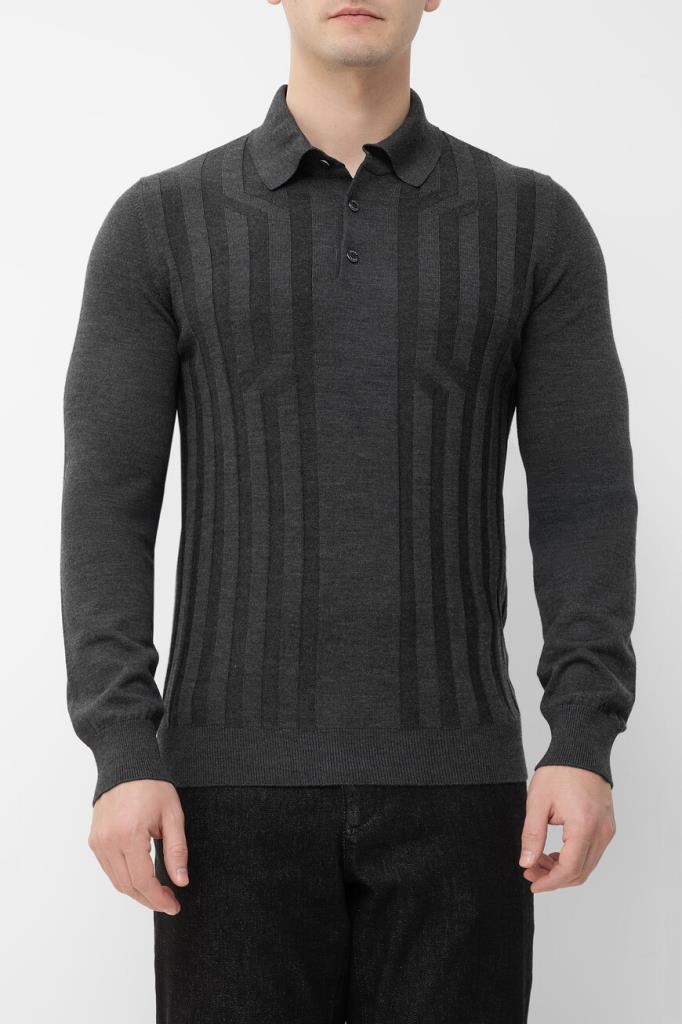 Поло на трёх роговых пуговицах от Zilli. Для изготовления модели прилегающего силуэта выбран мягкий трикотаж на основе шерсти, кашемира и гладкого шёлка тёмно-серого цвета. Изделие отличается вязкой лицевой гладью и обеспечивает непревзойдённое удобство и комфорт. Поло с геометрическим узором в виде полос станет универсальным дополнением к любому гардеробу. Модель можно носить и с формальными брюками, и с джинсами.