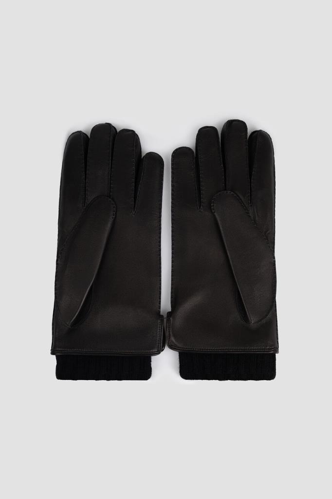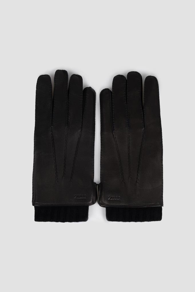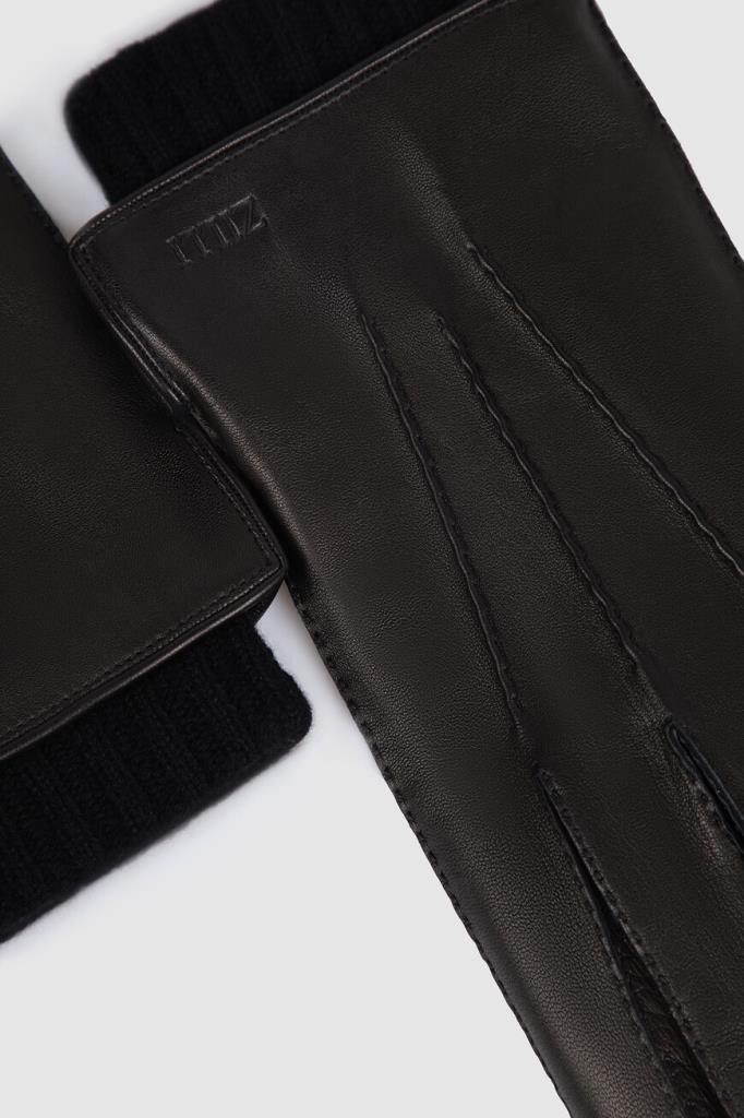 Кожаные перчатки чёрного цвета от Zilli. Модель с рельефной дизайнерской строчкой-узором на тыльной стороне отличается наличием трикотажной манжеты-резинки, которая плотно облегает и не пропускает холод внутрь. Принадлежность классического аксессуара Дому обозначена небольшим тиснёным логотипом на запястье.