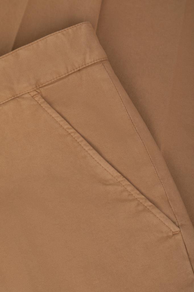 Чиносы Isaia Sartorial станут достойной альтернативой традиционным джинсам. Модель изготовлена из мягкого трикотажа на основе хлопка стрейч и кашемира с четырьмя карманами: двумя прорезными с диагональным входом по бокам и прорезными на роговой пуговице сзади. Изделие зауженного силуэта характеризуется наличием классических стрелок и отсутствием декора.