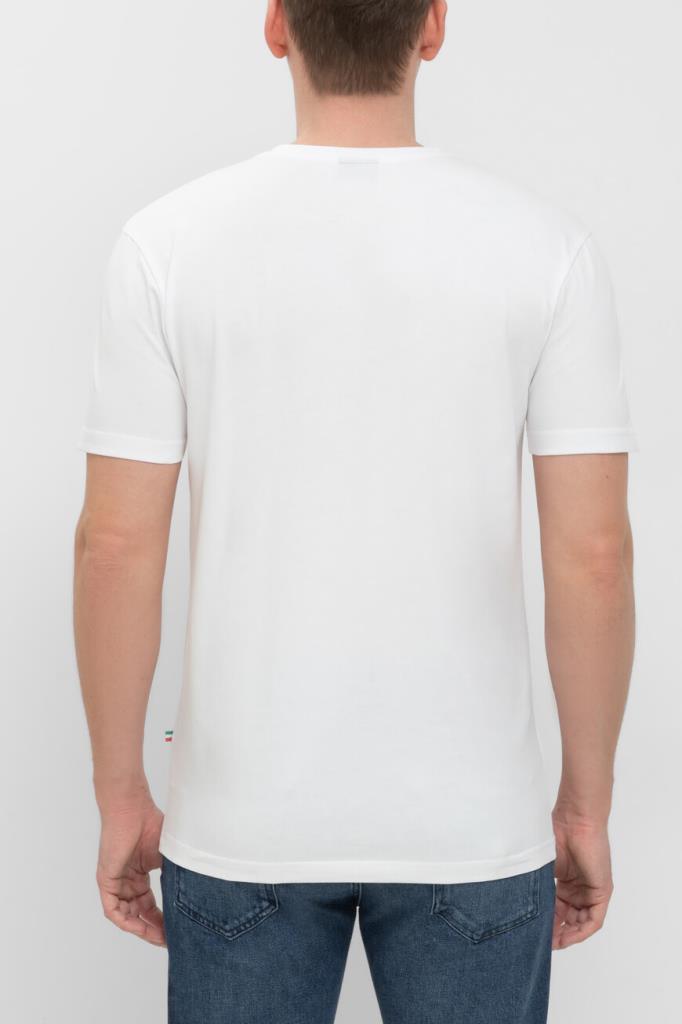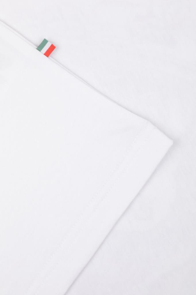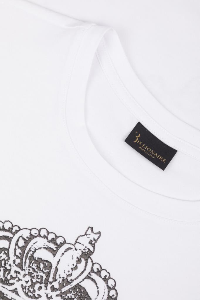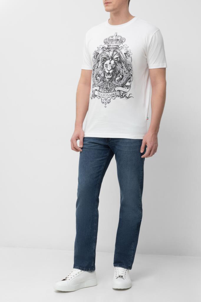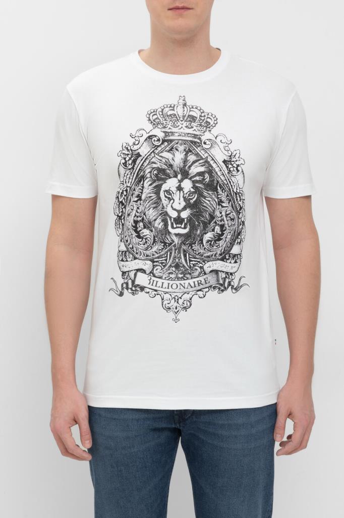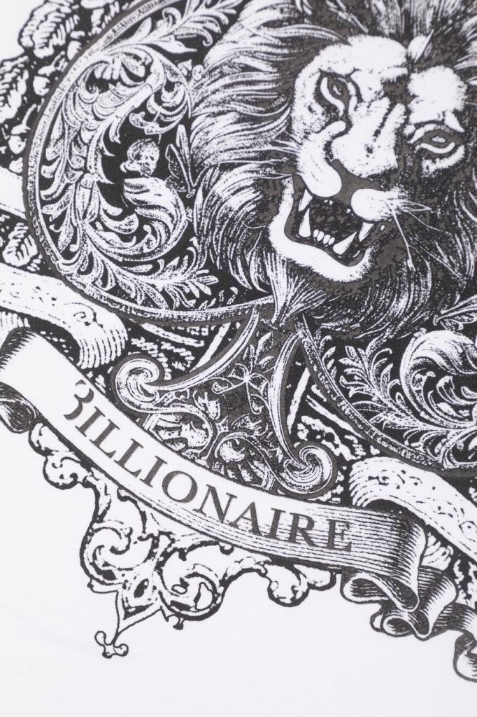 Хлопковая футболка Billionaire добавит в Ваш образ интересную ноту. Для создания прямой модели белого цвета выбрано мягкое джерси. Отличительными деталями стали крупный прорезиненный принт с контрастными изображением льва, короны и логотипа спереди и вставка в виде миниатюрного флага Италии сбоку слева.