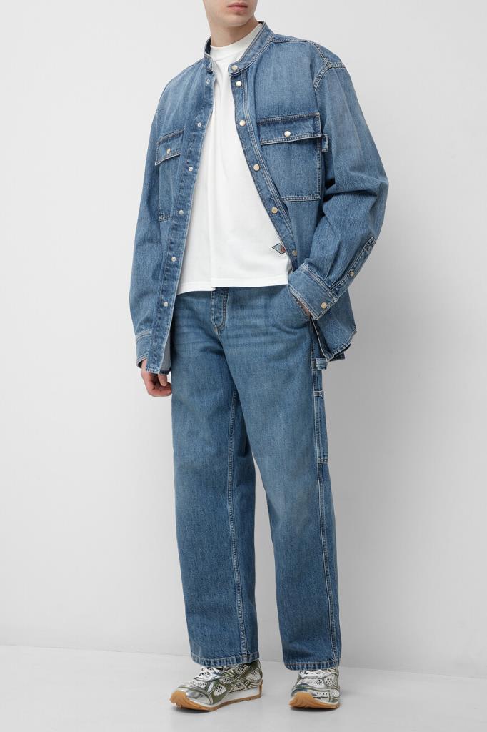 Базовая футболка BOTTEGA VENETA с перевёрнутым треугольником на спинке. Модель изготовлена из лёгкого хлопкового джерси белого цвета. Фасон изделия предполагает расслабленный силуэт и наличие круглого выреза горловины на резинке. Атрибутом Дома является ромбовидный патч с вышитым двухцветным логотипом спереди.