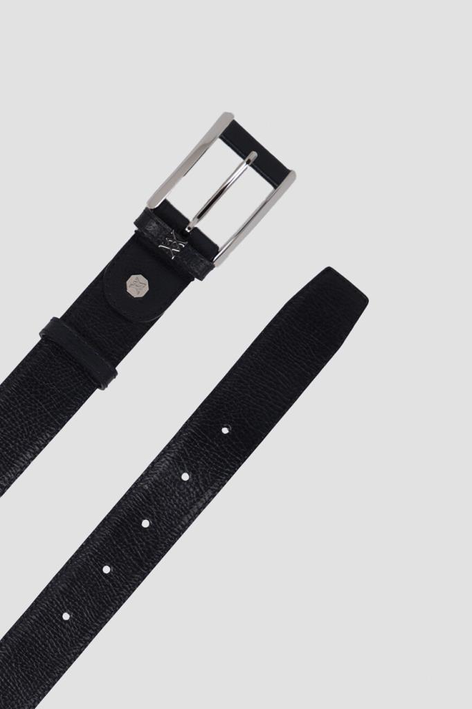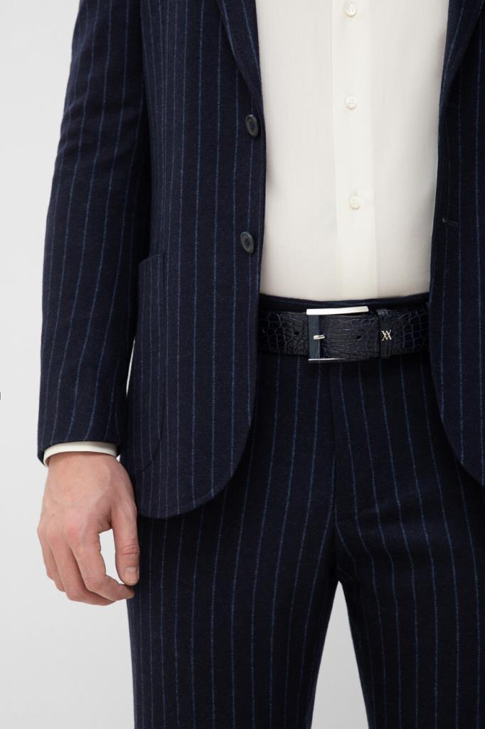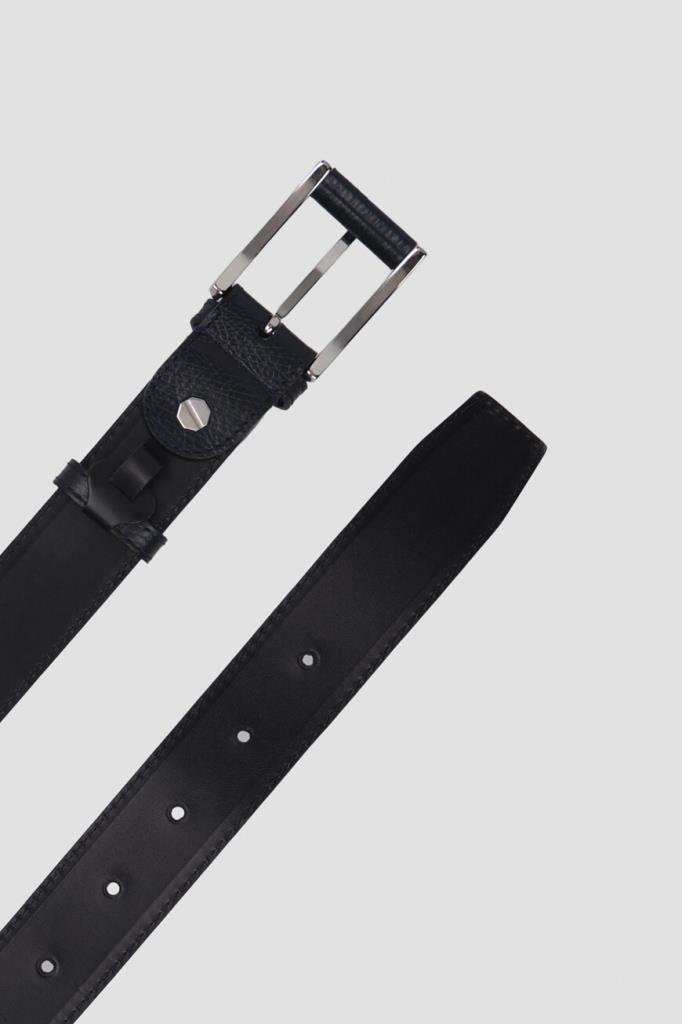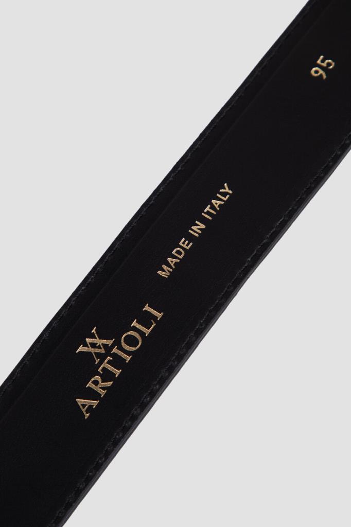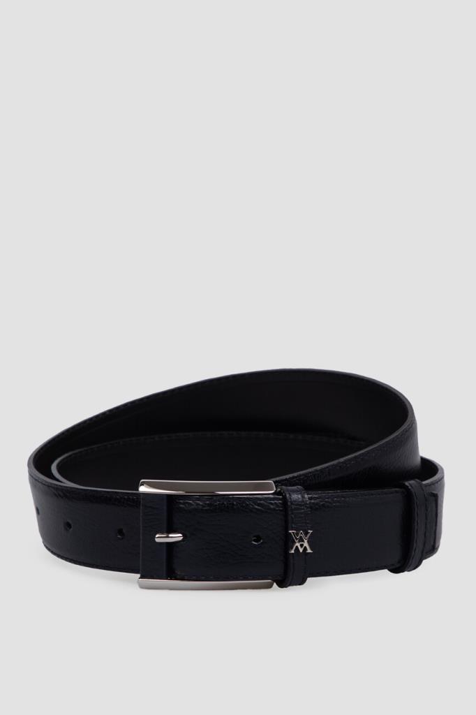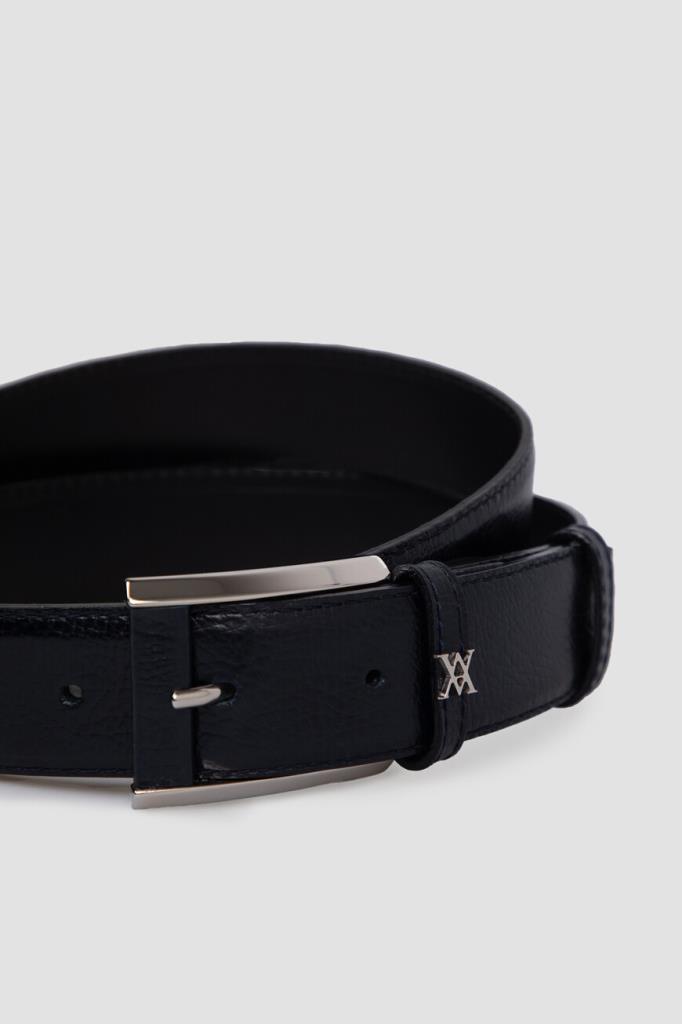 Практичный ремень тёмно-синего цвета от бренда Artioli. Для изготовления модели с классической прямоугольной пряжкой выбрана мягкая зернистая кожа ламы. Декором выступают культовые лого-монограммы Дома на месте крепления пряжки и кожаном тренчике и брендирование светло-золотого оттенка на обратной стороне.