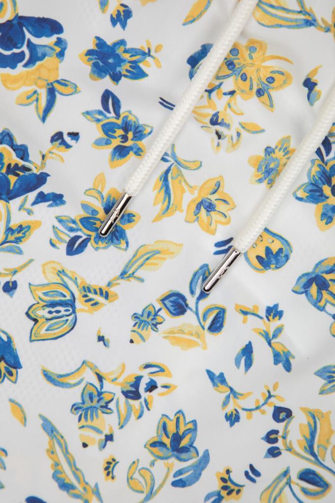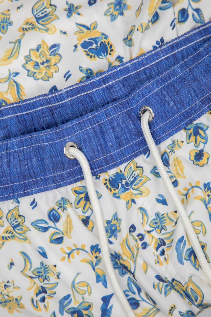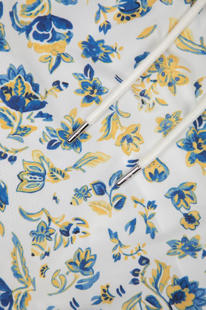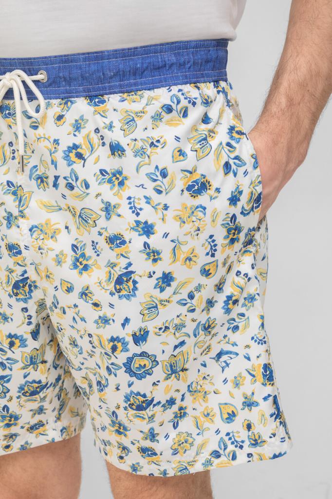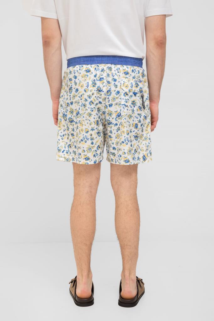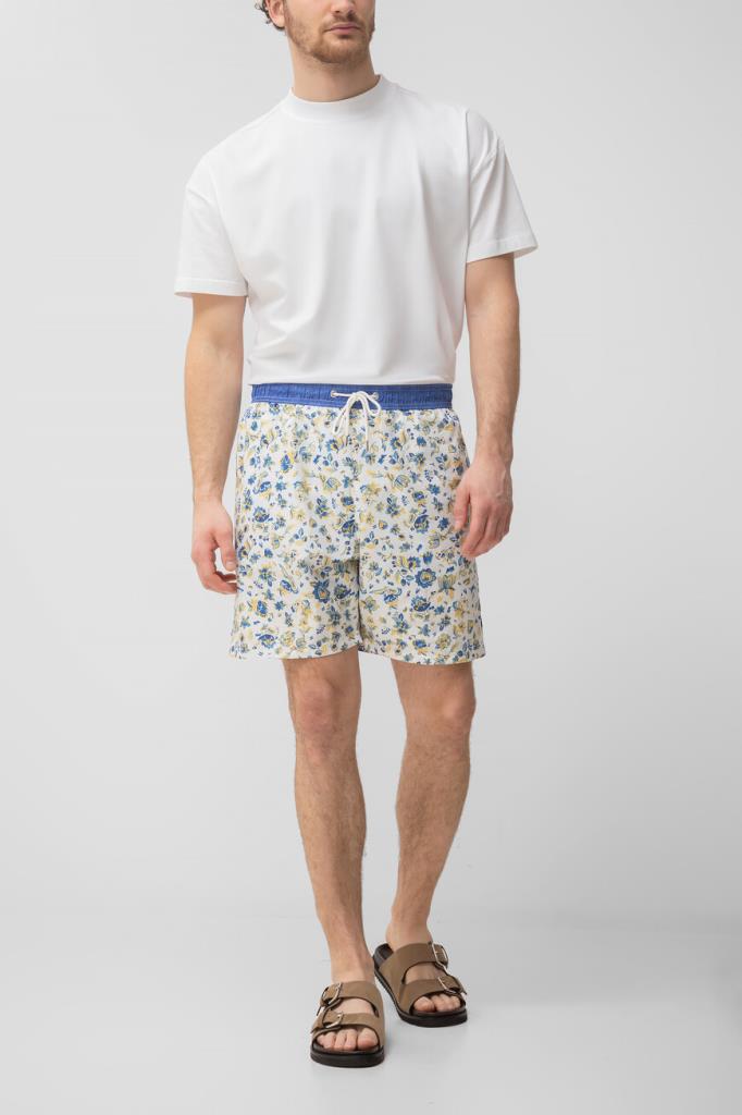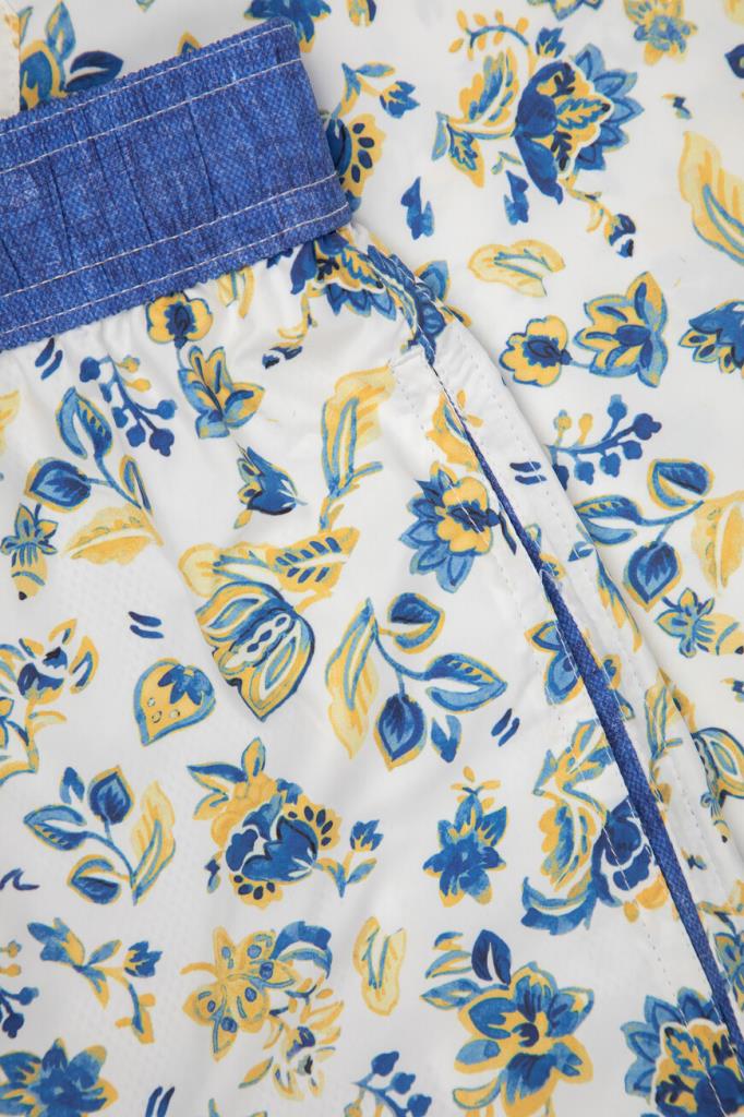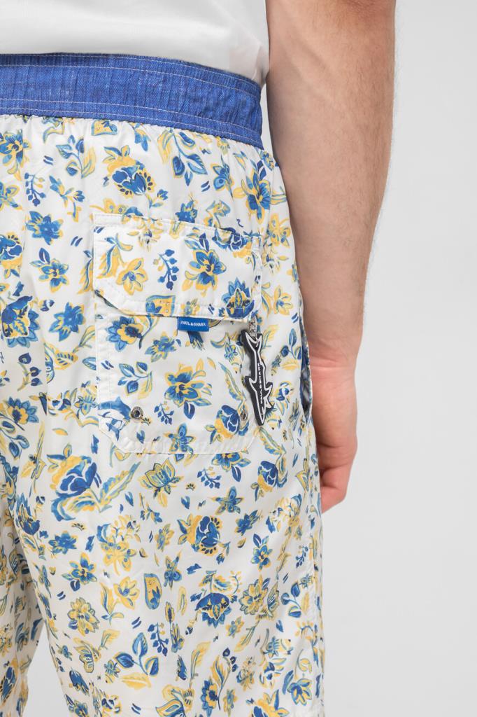Белые принтованные плавки-шорты от бренда Paul&Shark. Модель свободного кроя со стандартной посадкой изготовлена из прочного полиэстера. Полотно не вытягивается, быстро высыхает и не выгорает на солнце, а также устойчиво к агрессивной хлорированной и солёной морской воде. Отличительными особенностями изделия являются цветочный мотив и белая подкладка из сетки.