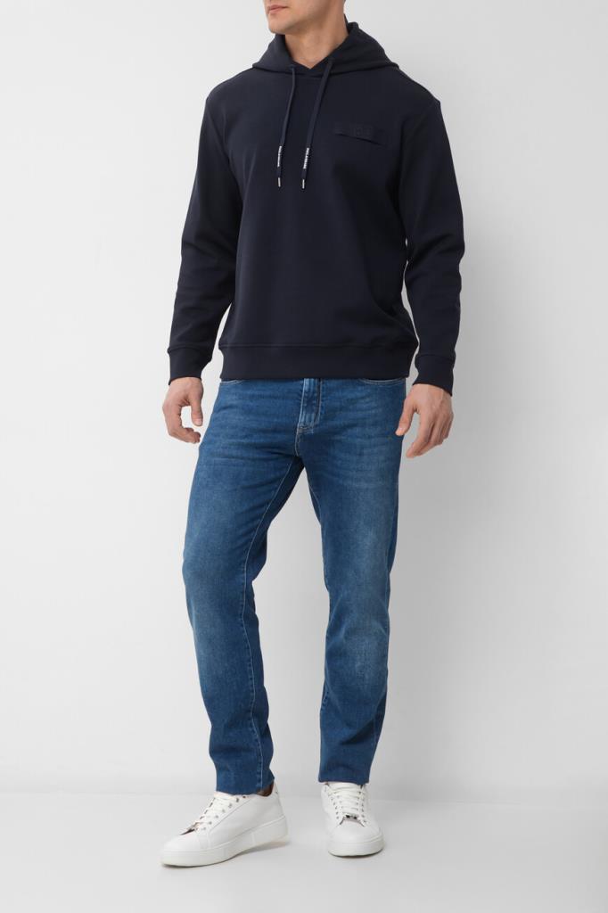 Тёмно-синее худи Paul&Shark станет основой Ваших casual-комплектов. Для создания изделия в спортивном стиле выбран эластичный трикотаж на основе хлопка и нейлона. Фасон модели прямого силуэта характеризуется наличием глубокого капюшона на брендированных завязках и манжетами рукавов и широким поясом для оптимальной посадки. Отличительной деталью является текстильная прямоугольная вставка с вышитым изображением акулы слева на груди.