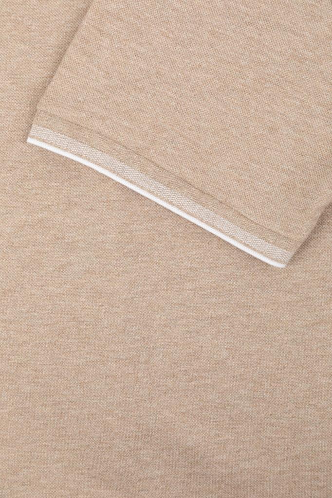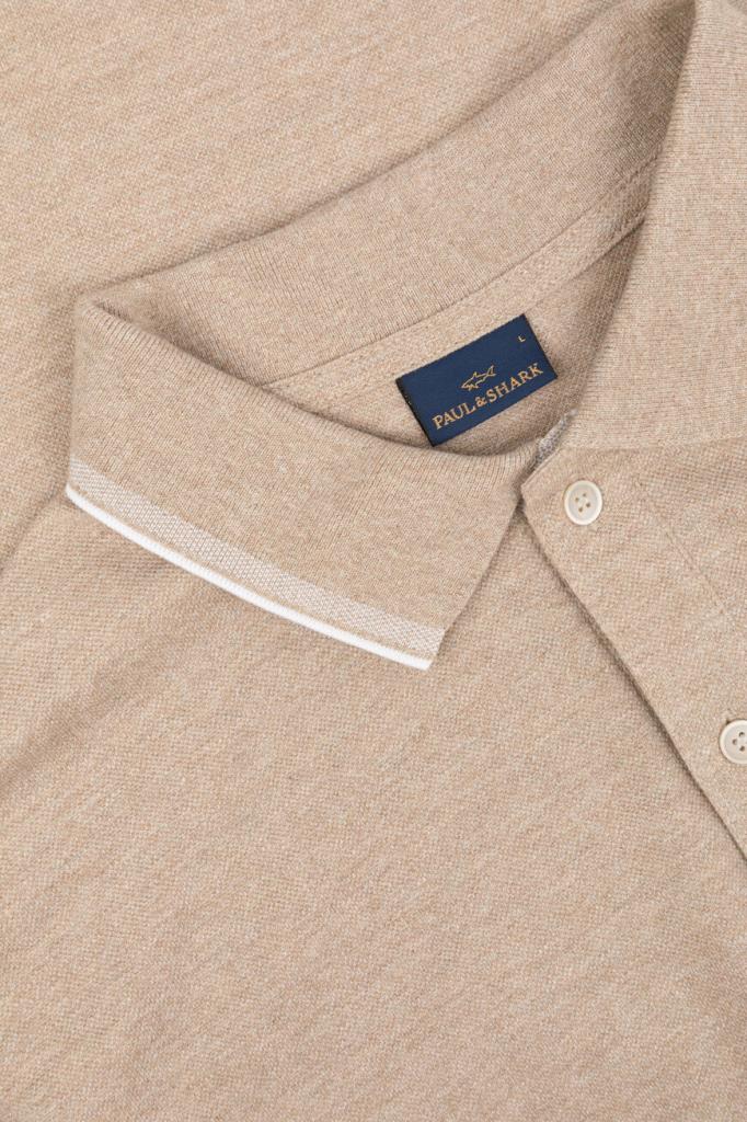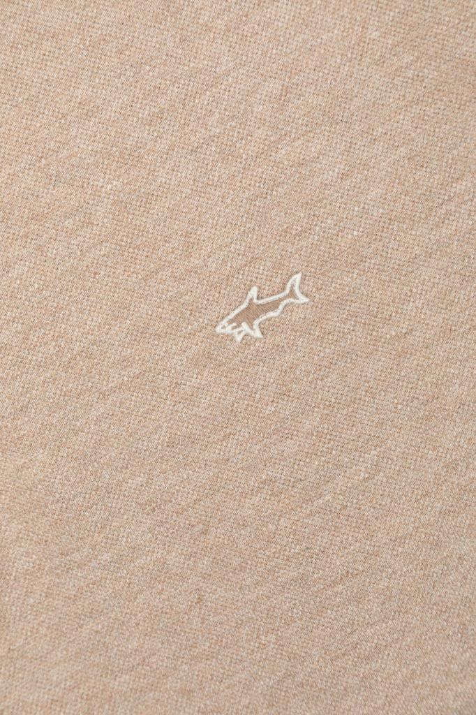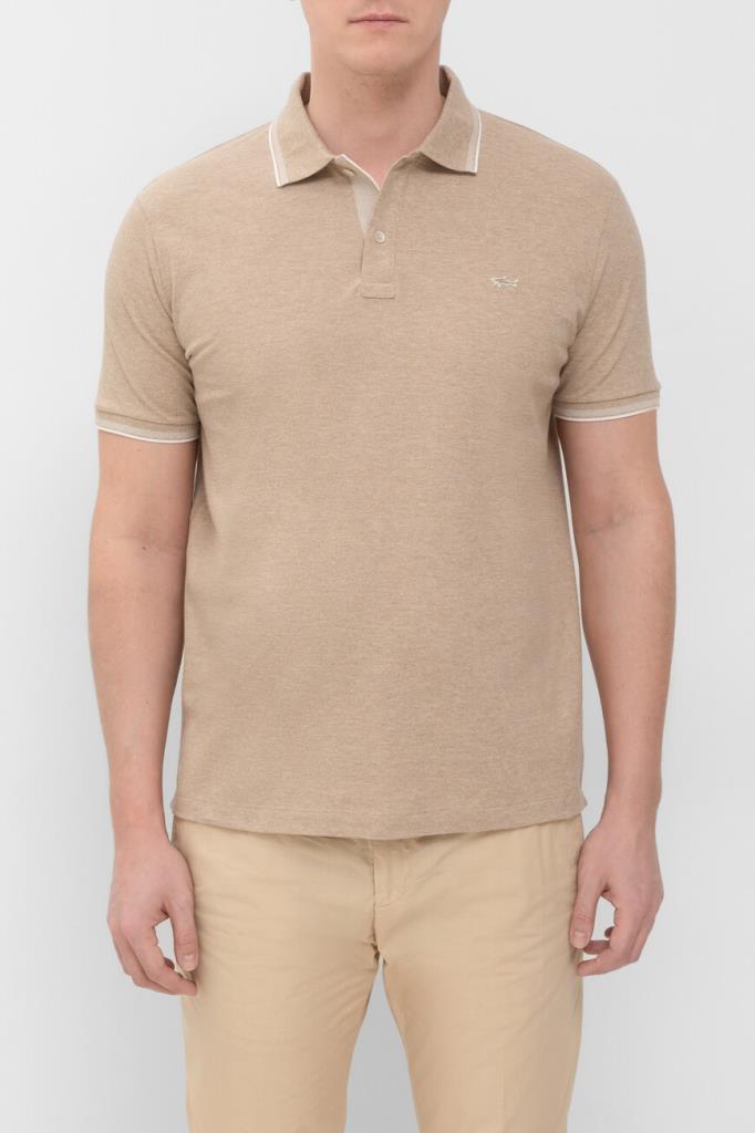 Трикотажное поло песочного оттенка от бренда Paul&Shark. Для пошива меланжевой модели выбран хлопок Jaspé Piqué с дышащей текстурой. Изделие интересно белыми полосами-кантом на отложном воротнике, внутренней стороне планки застёжки и манжетах рукавов, а также вышитой минималистичной символикой - изображением акулы слева на груди. Поло с неглубокими боковыми разрезами идеально сочетается с джинсами или чиносами в зависимости от случая.