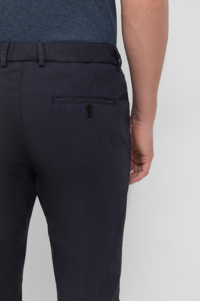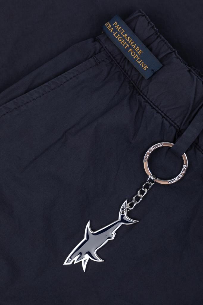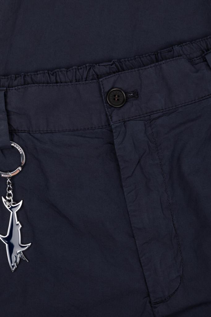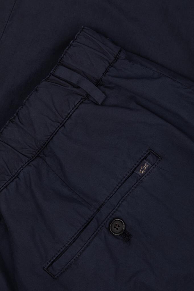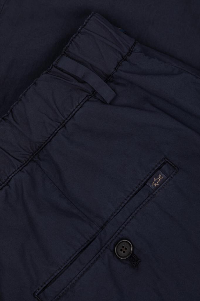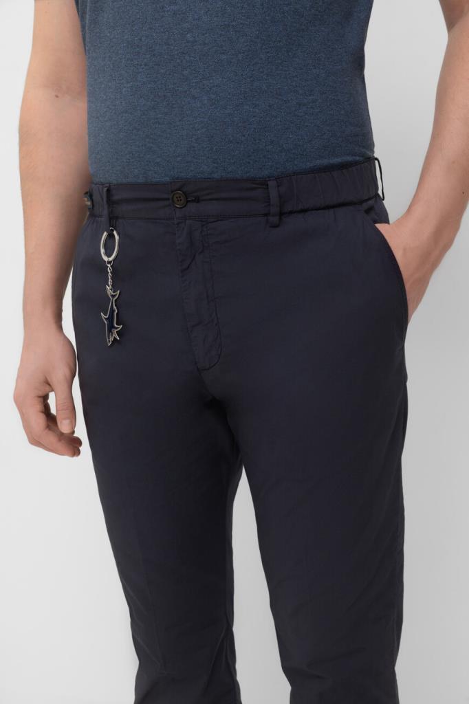 Лёгкие брюки-чиносы Paul&Shark подстраиваются под каждое Ваше движение. Конструкция повседневной модели из тёмно-синего хлопкового поплина, также подходящей для более формальных образов, предполагает наличие плотного пояса со шлевками под ремень и эластичной вставкой и четырёх прорезных карманов. Роль знакового декора отдана вставке с изображением акулы на правом заднем кармане и крупному эмалированному брелку, идущему в комплекте.