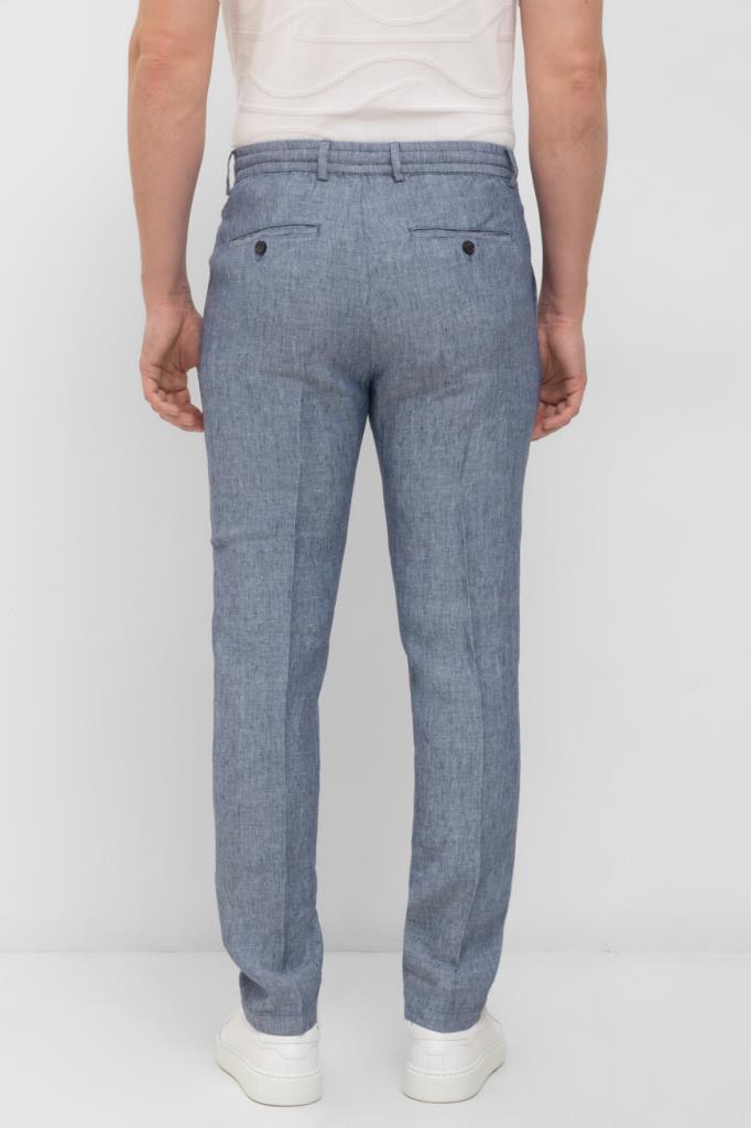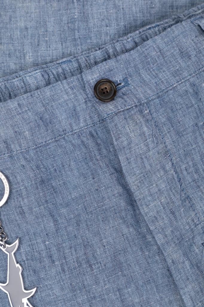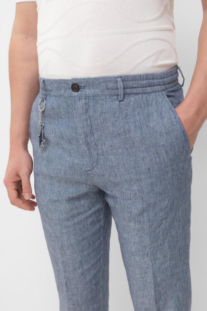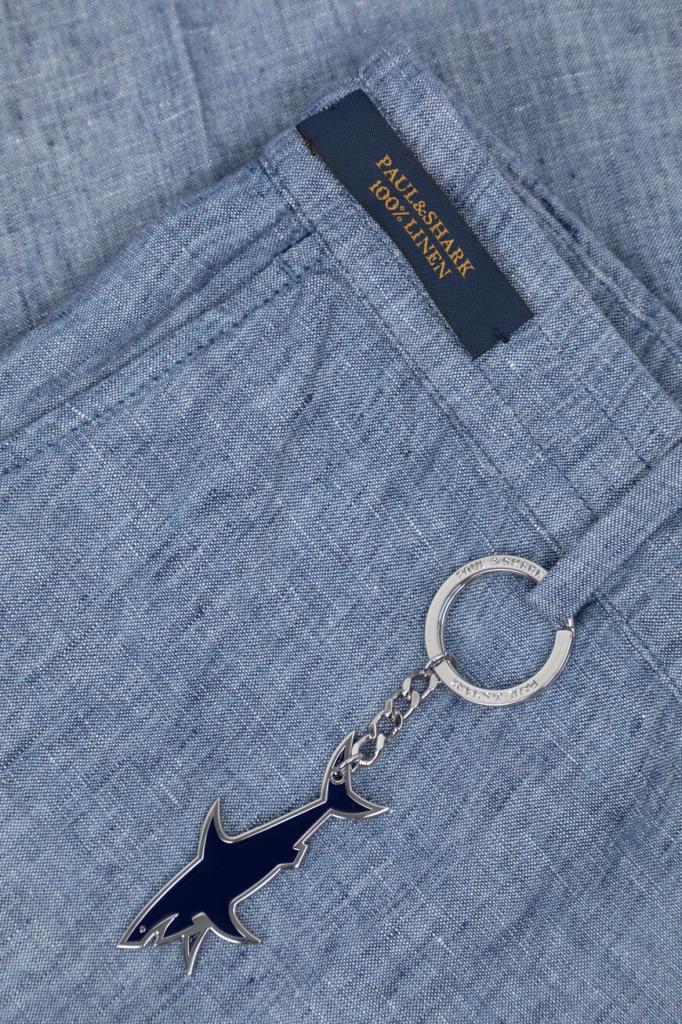 Брюки Paul&Shark хорошо пропускают воздух, поддерживая оптимальный микроклимат. Всё дело в материале: изделие синего цвета сшито из тонкого мягкого льна. Фасон повседневной модели характеризуется прямым силуэтом и наличием плотного широкого пояса со шлевками под ремень и эластичной вставкой, обеспечивающей комфортную посадку по фигуре. В комплекте - эмалированный брелок в виде знаковой для бренда акулы.