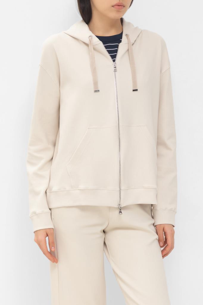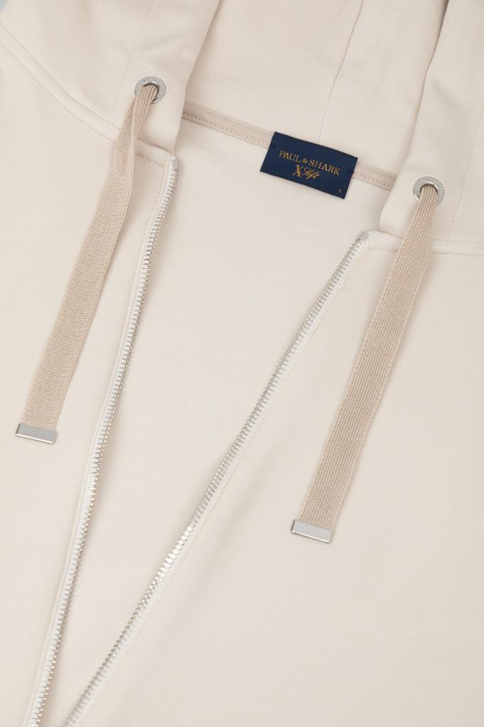 Толстовка Paul&Shark на встречной молнии с двумя брендированными пуллерами. Изделие сшито из эластичного трикотажа на основе хлопка Active Fleece и прочного нейлона с эксклюзивной мягкой обработкой X-Soft. Модель, выполненная в спортивном стиле, интересна наличием глубокого капюшона на завязках и двух крупных накладных карманов, позволяющих держать всё необходимое в повседневной жизни под рукой. Атрибутом Дома выступает прямоугольный лейбл с гравировкой спереди.