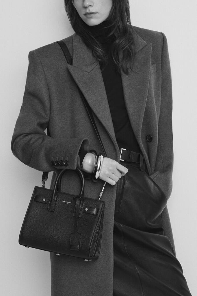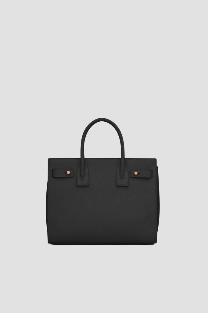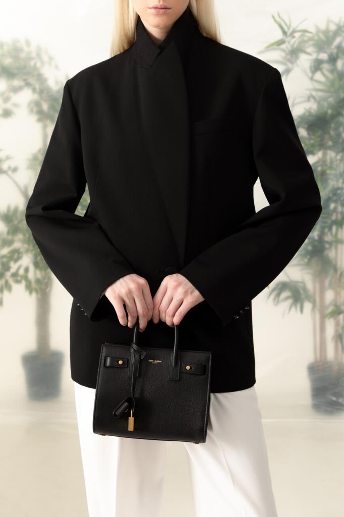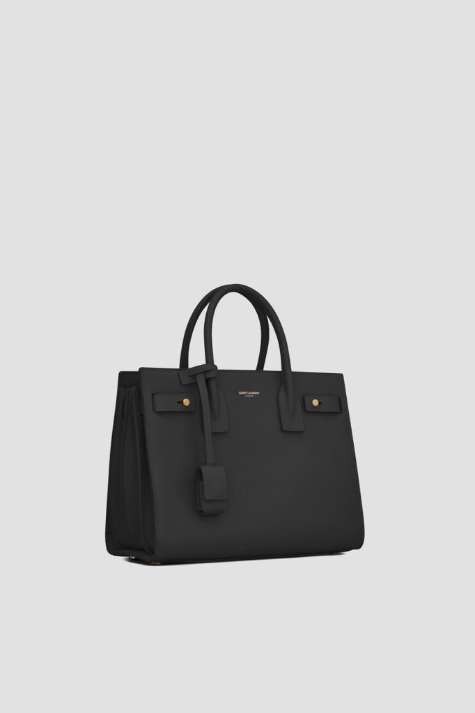 Чёрная сумка SAC DE JOUR Nano от бренда Saint Laurent. Для изготовления компактной модели с просторным внутренним отделением используется зернистая телячья кожа. Отличительными особенностями аксессуара являются его мягкие формы и наличие двух вариантов переноски: в руке за две округлые ручки и на плече или через плечо с использованием тонкого плечевого ремня с бронзовыми карабинами. Декором выступают минималистичная надпись-логотип на лицевой стенке и брендирование на латунном замке.