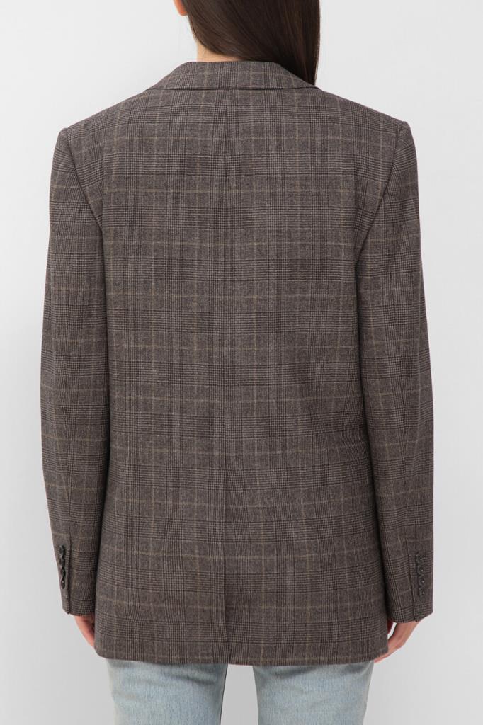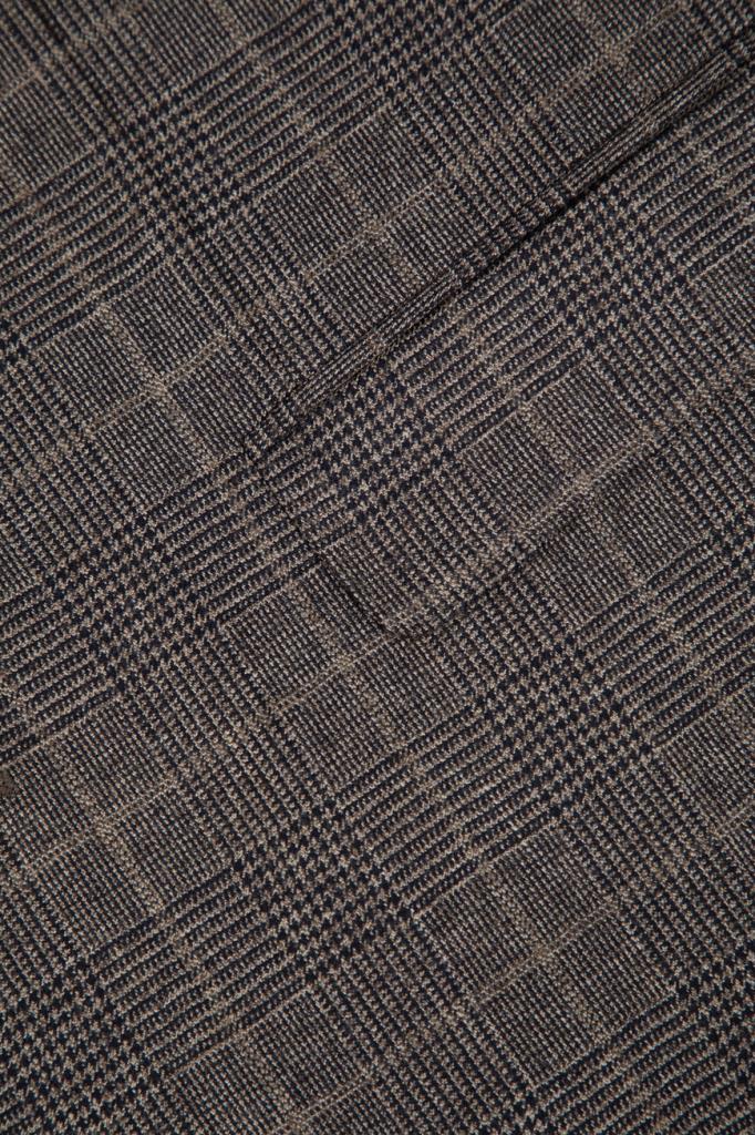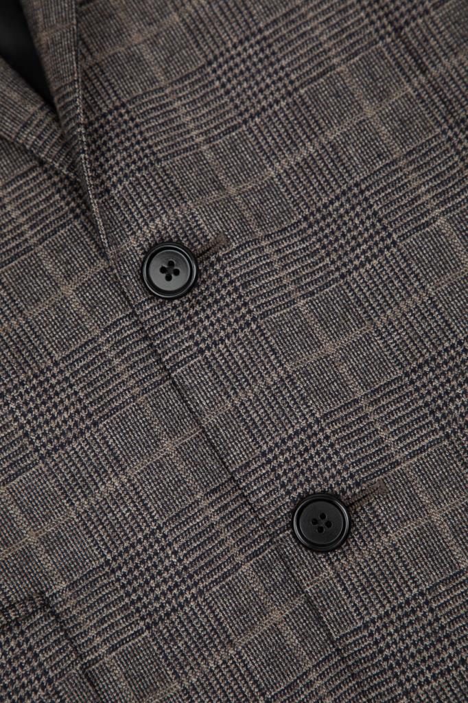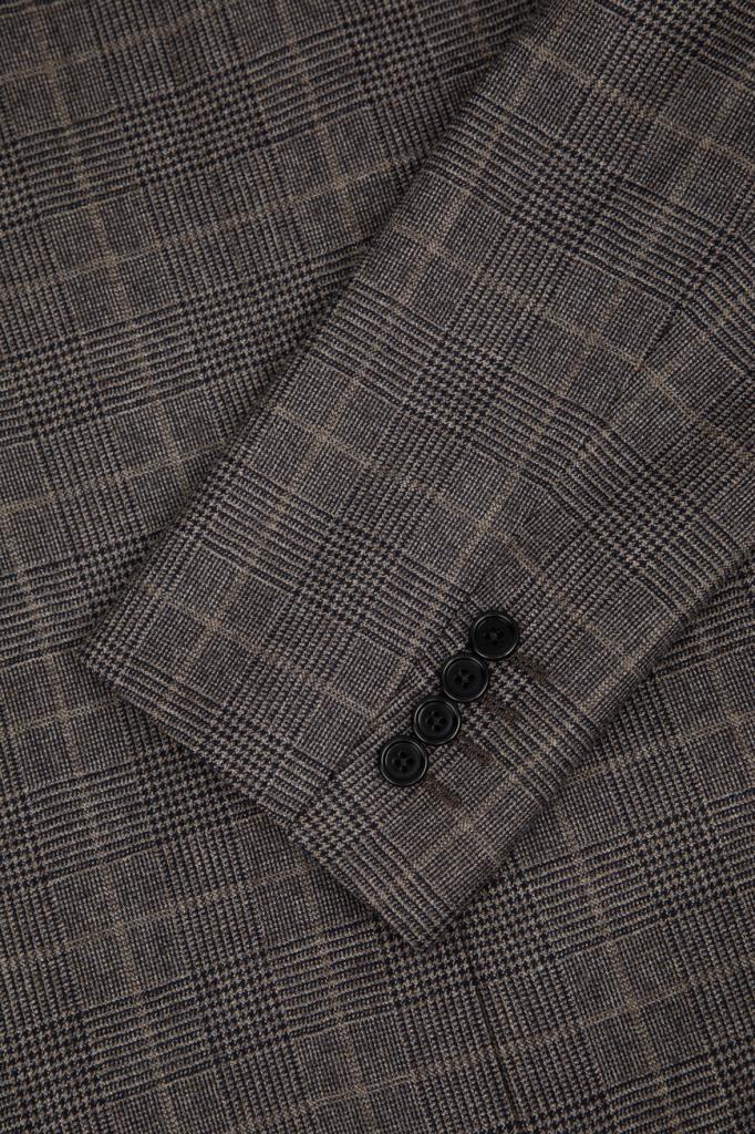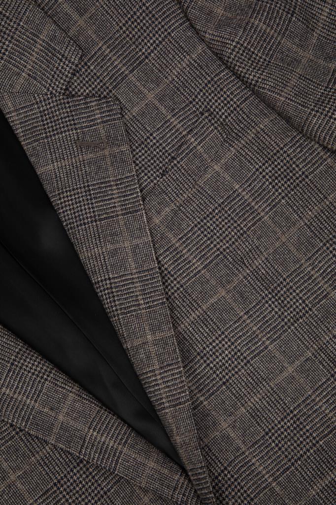 Клетчатый блейзер мужского кроя от Celine. Для изготовления однобортной модели Bibliothèque Nationale de France на чёрной подкладке выбрана мягкая шерсть. Поверхность изделия украшает крупный геометрический мотив «Принц Уэльский». Конструкция пиджака предполагает наличие прямоугольных лацканов и застёжку на две роговые пуговицы чёрного цвета.
