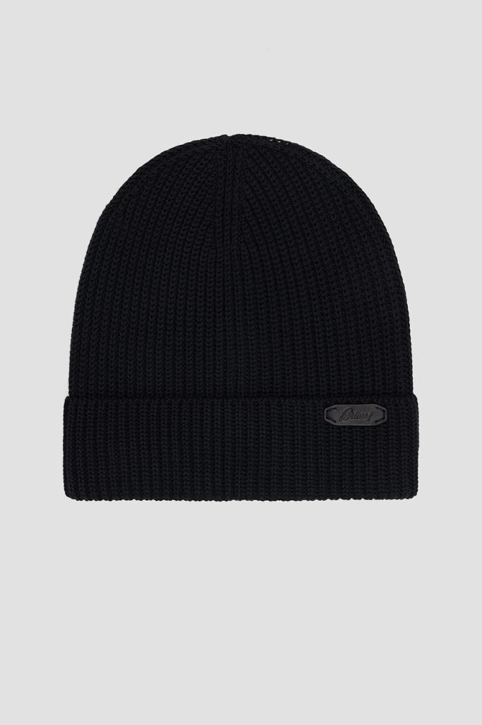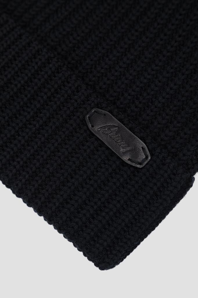 Шапка бини из натуральной экологичной шерсти чёрного цвета от Brioni. Шерсть для производства одежды поступает с ферм, где применяются передовые методы обработки и обеспечивается благополучие овец и пастбищ. Принадлежность аксессуара бренду обозначена кожаной нашивкой с логотипом на отвороте.
