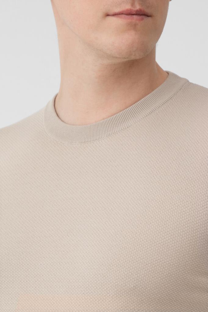 Трикотажная футболка-джемпер от Brioni с характерным геометрическим узором. Для изготовления модели прямого силуэта выбрано мягкое хлопковое пике Sea Island бежевого оттенка. Sea Island — это один из самых изысканных и востребованных видов хлопка в мире. Он выращивается в ограниченных количествах на Карибах и славится своими длинными волокнами, которые формируют более прочную и эластичную пряжу, шелковистую и гладкую на ощупь. Изделие с окантовкой-строчкой на манжетах рукавов и широком поясе позволяет создать непринуждённый многослойный образ в современном стиле.