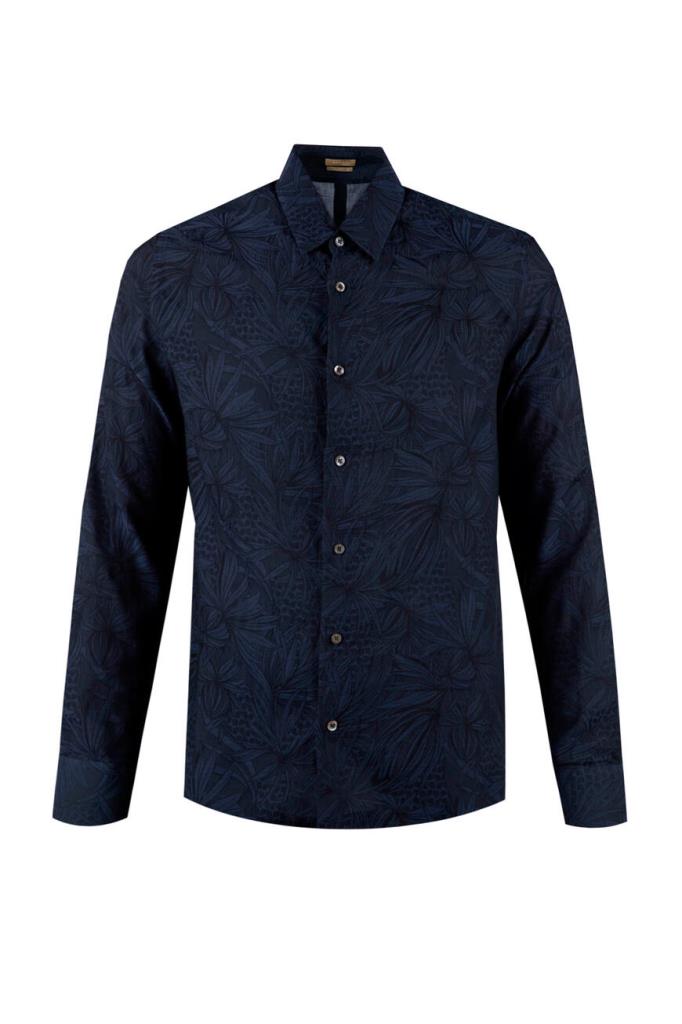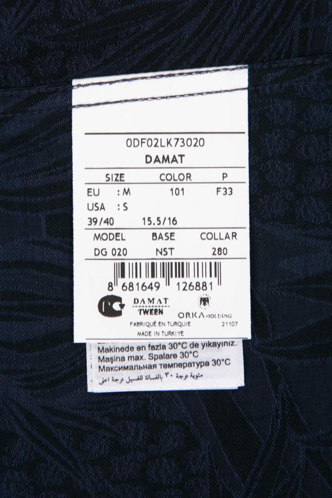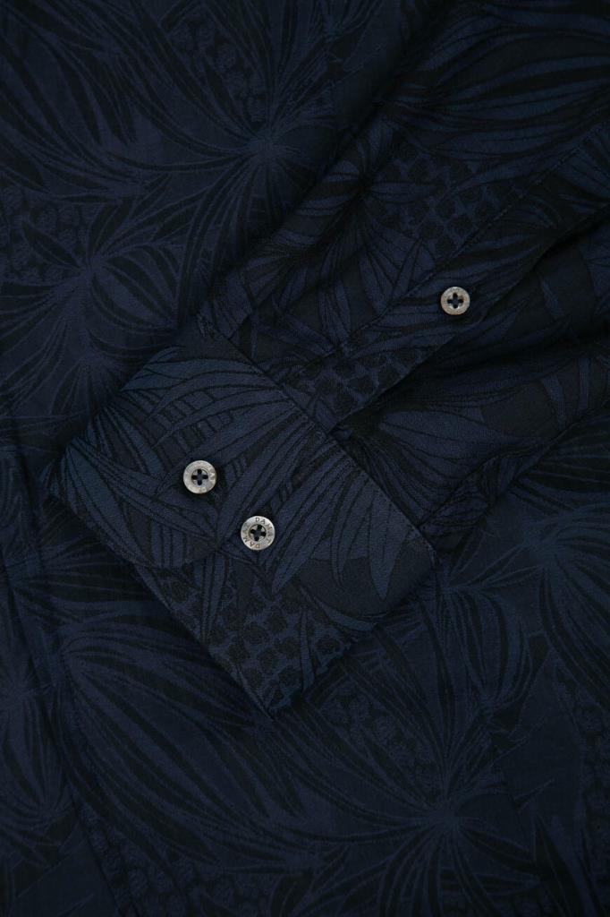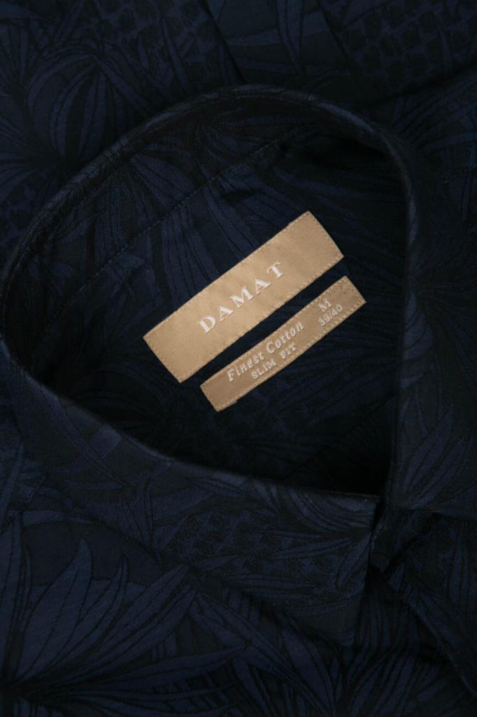 Роскошная мужская рубашка Damat из мягкого хлопкового трикотажа тёмно-синего цвета с оригинальным контрастным растительным узором по всей поверхности изделия.