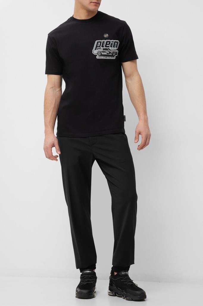 Футболка Philipp Plein чёрного цвета задаст настроение Вашего casual-комплекта. Для изготовления эксклюзивной модели прямого силуэта используется мягкое хлопковое джерси. Слева на груди размещены знаковые нашивка-шестигранник из сафьяновой кожи PP Hexagon и патч с крупным логотипом и символикой гонок на суперкарах.