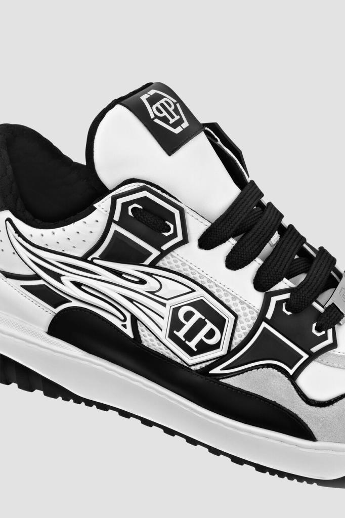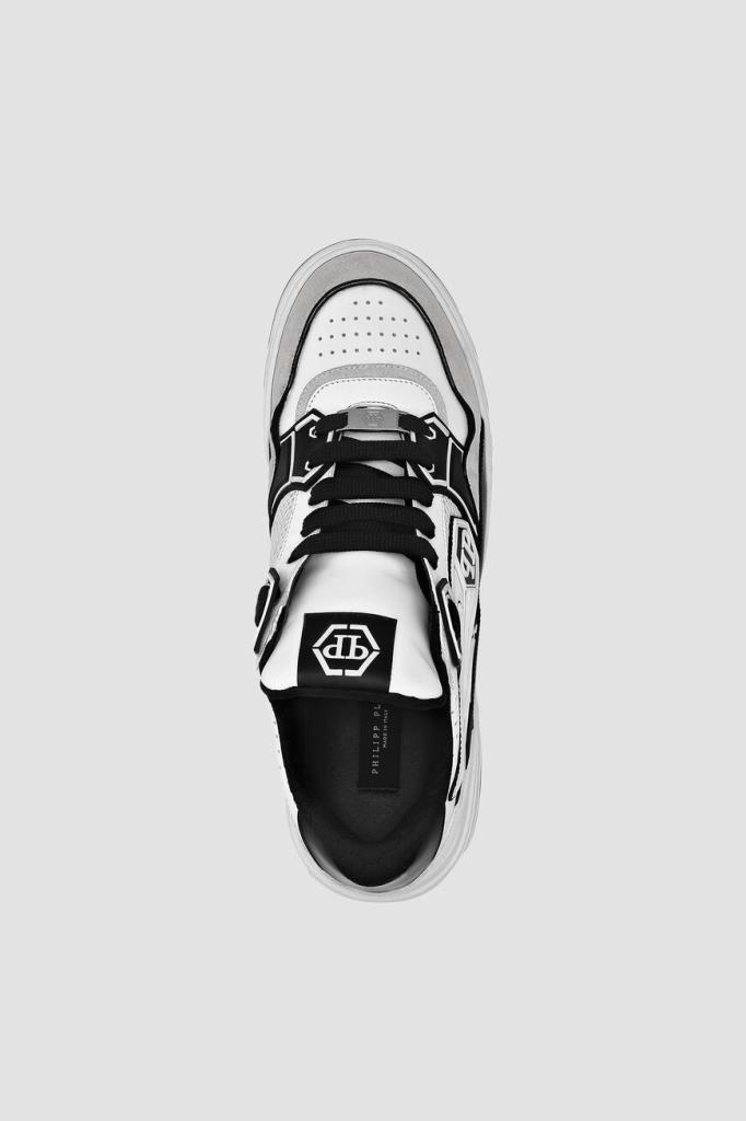 Сникеры LO-TOP Strass от бренда Philipp Plein добавят уникальности Вашему образу. Конструкция чёрно-белой модели, выполненной из комбинации спилка со вставками из плотной сетки на боковинах и деталями из гладкой кожи телёнка и бархатистой серой замши. Декором выступают вставка с лого-монограммой на язычке, серебристый металлический лейбл с гравировкой на шнуровке и рельефный шестигранник PP Hexagon в виде летящей кометы сбоку. Толстая прорезиненная подошва оснащена чёрной вставкой с рифлением для надёжного сцепления с дорогой.