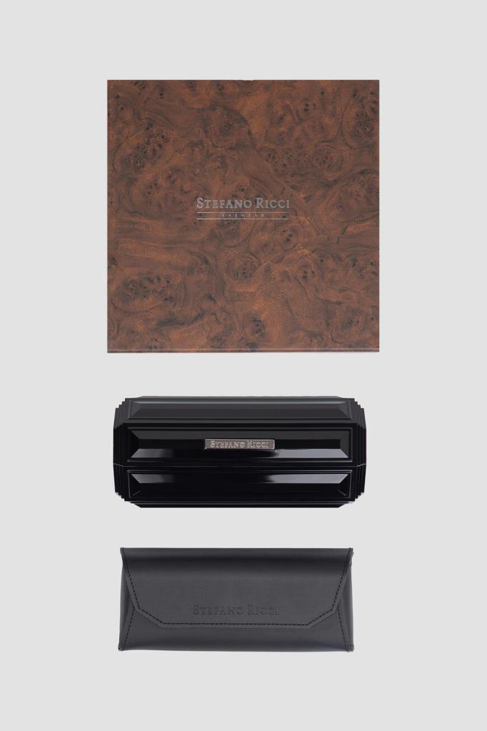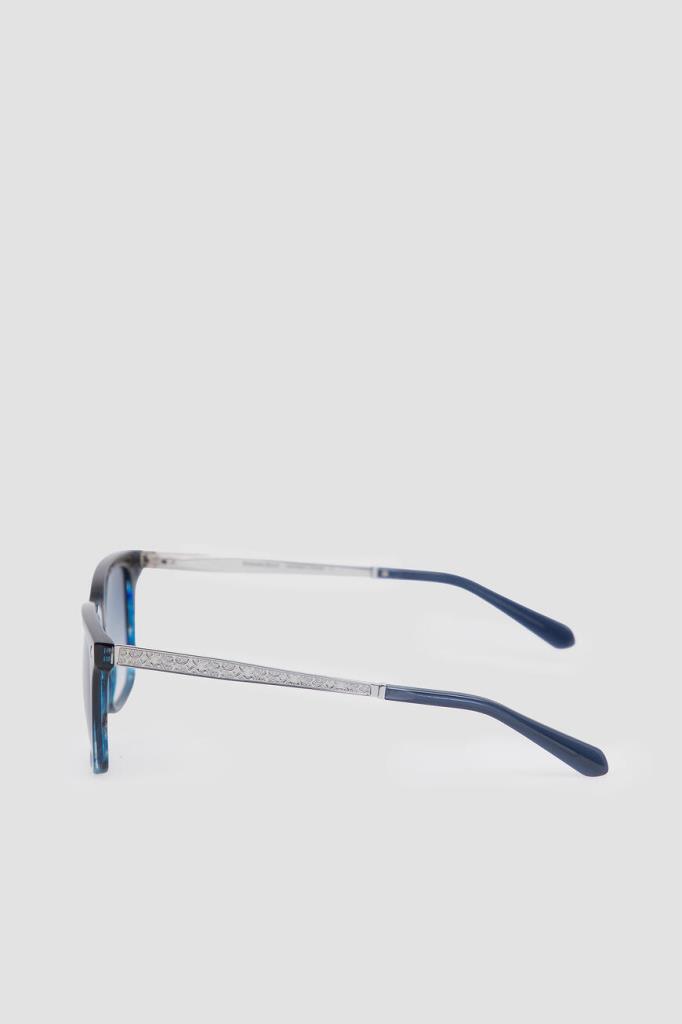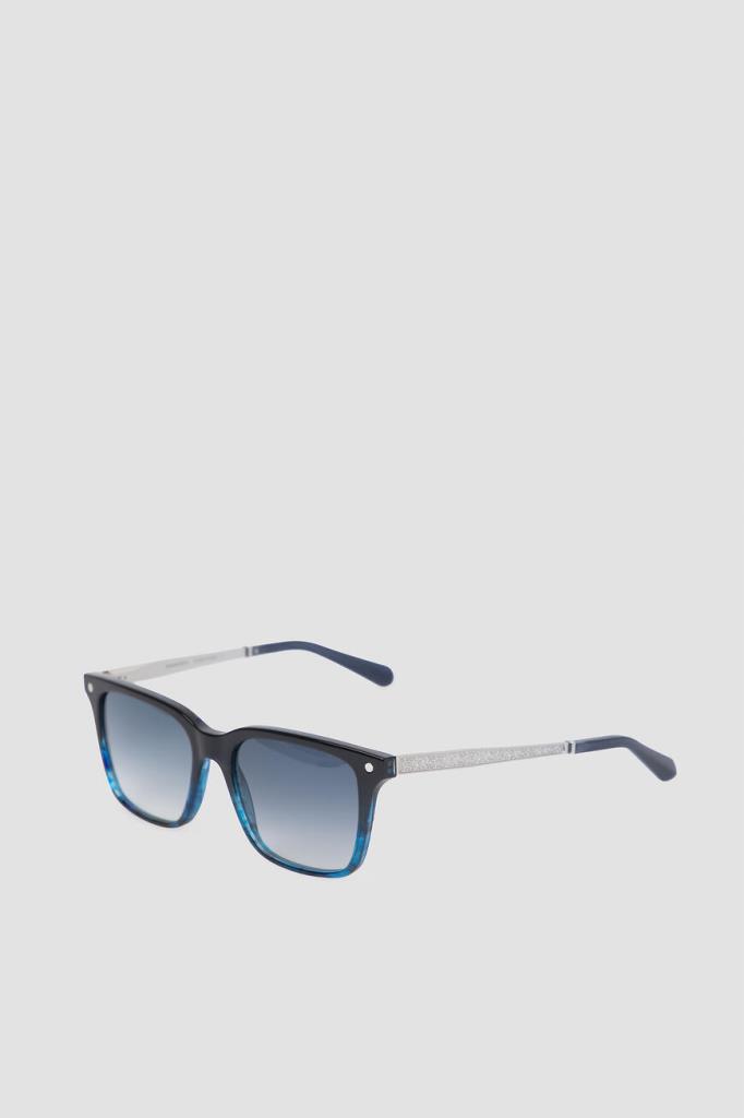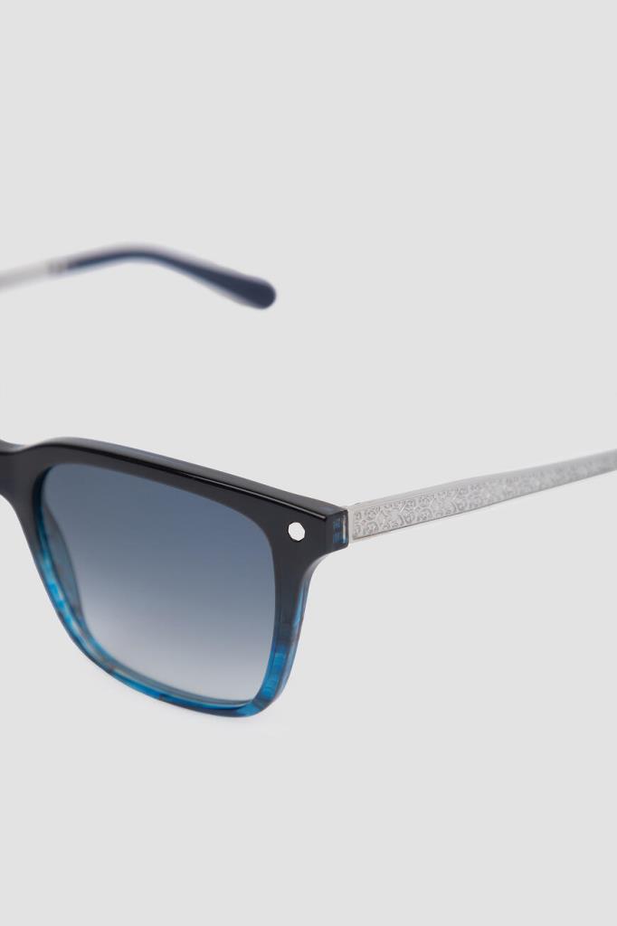 Солнцезащитные очки Elite от Stefano Ricci. Культовый аксессуар выполнен из ацетата в синей гамме. Отличительными особенностями модели являются прямоугольная оправа и линзы голубого оттенка с эффектом деграде и защитой от ультрафиолета, царапин и бликов. Декором выступают вставки из серебристого металла с орнаментом на дужках.
