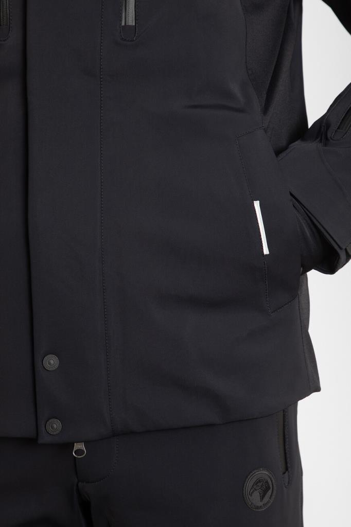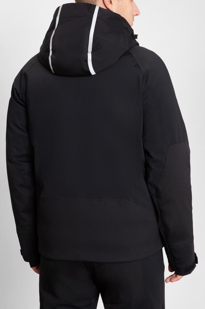 Лыжная куртка Stefano Ricci выполнена из прочного эластичного нейлона. Изделие чёрного цвета украшено крупным контрастным логотипом бренда. Модель оборудована электронным датчиком RECCO, который служит для своевременного поиска людей, погребенных в снегу после схода лавины. Маячок не нуждается в батарейках, устойчив к механическим воздействиям и стирке. За надёжную защиту от холода и ветра отвечают высокий воротник-стойка, объёмный капюшон на кулиске и наполнитель на основе натурального гусиного пуха и пера. Куртка дополнена трикотажными вставками и составит идеальный комплект с брюками из коллекции SKI, созданной для экстремальных горных условий.