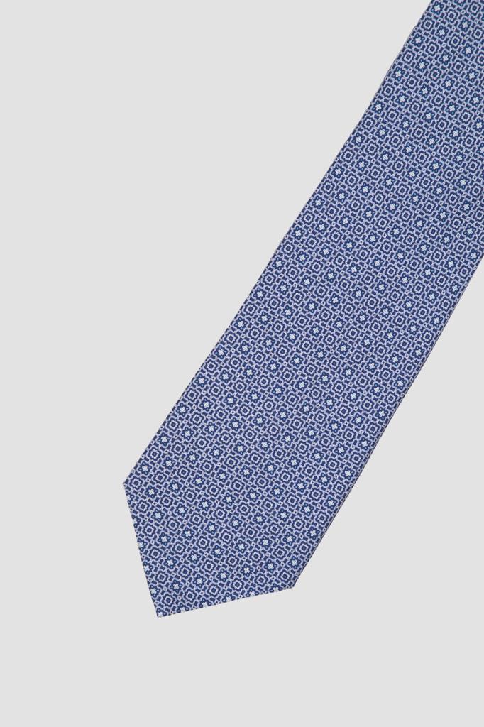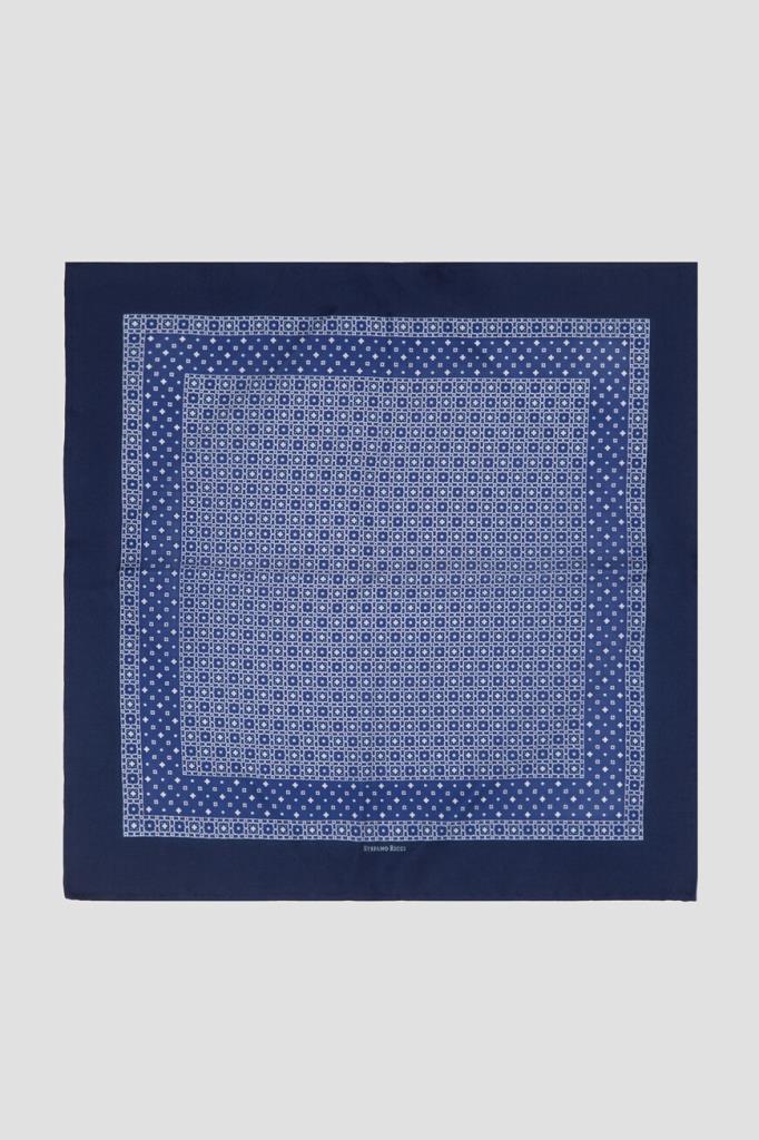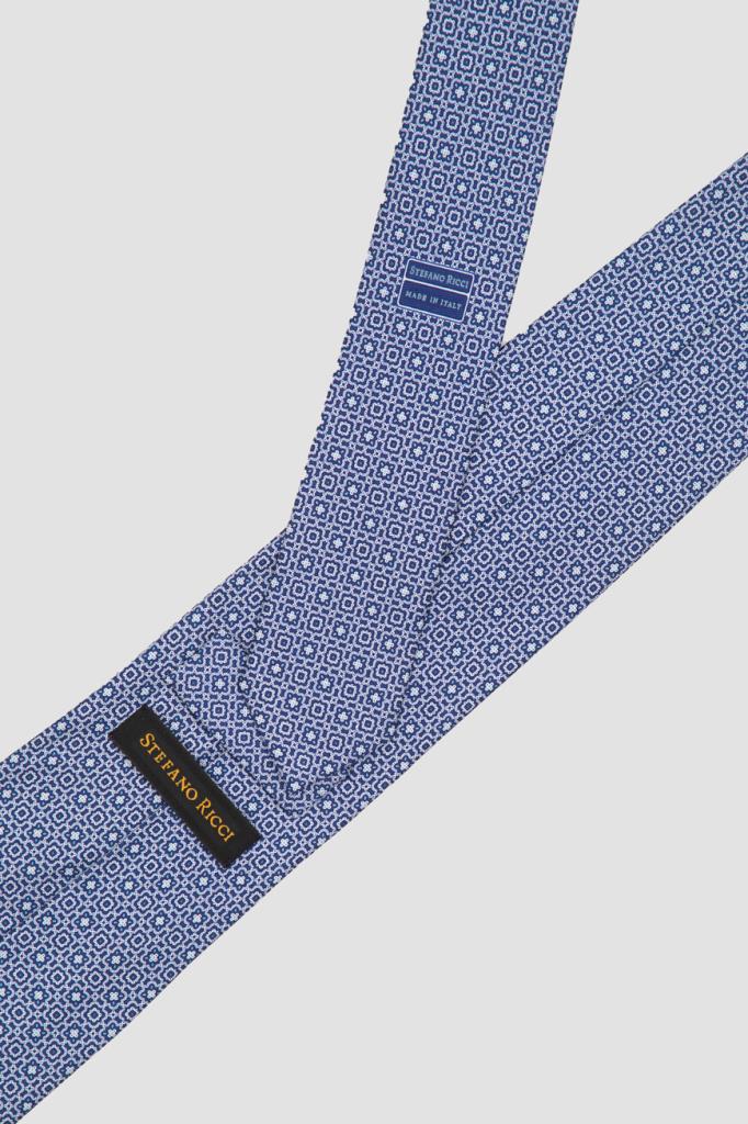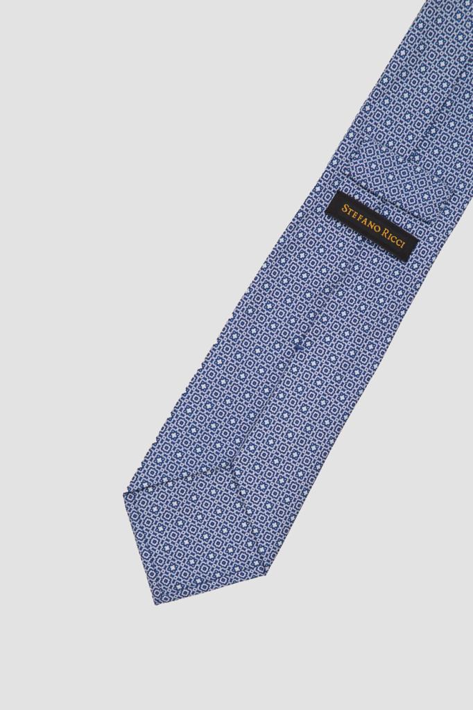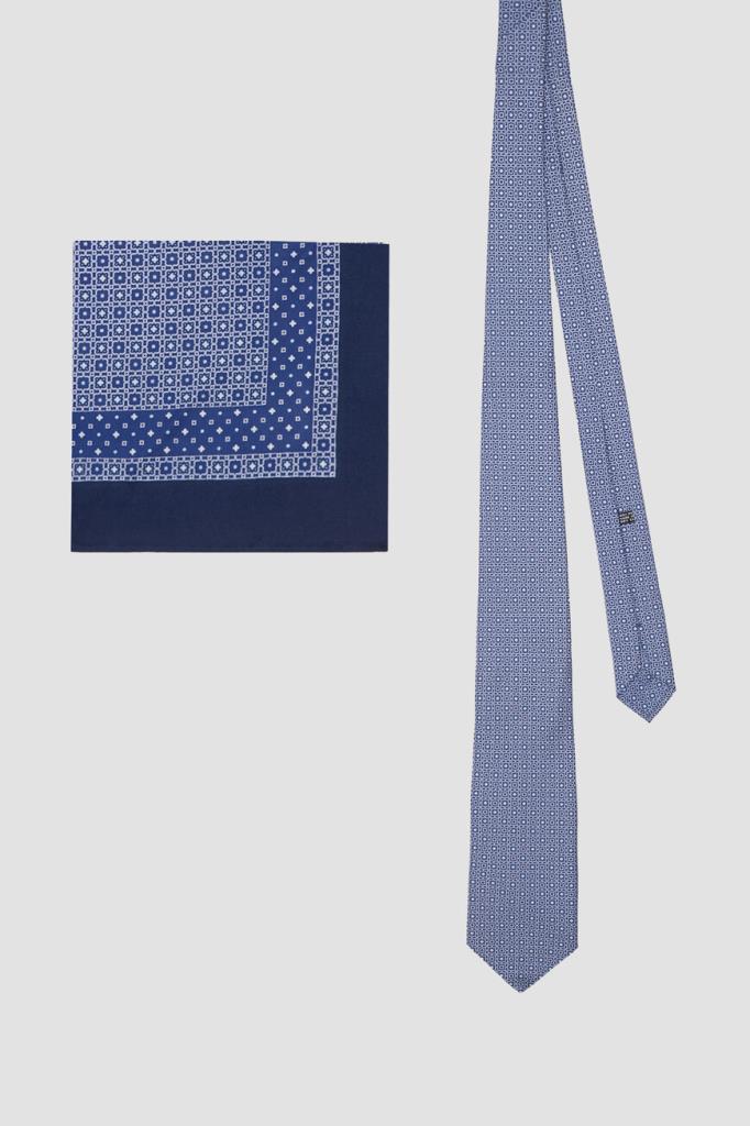 Набор: галстук и платок-паше от Stefano Ricci в бело-синей гамме. Для создания моделей с графичным принтом ручной работы выбран гладкий шелковый твил. Изделия декорированы мотивами итальянского сада. Галстук без подклада хорошо держит заданную кроем чёткость линий и не деформируется со временем. В роли знакового декора выступает логотип на тёмно-синем канте квадратного платка.