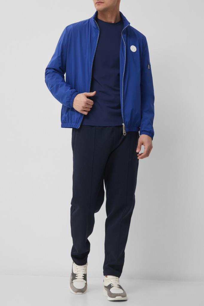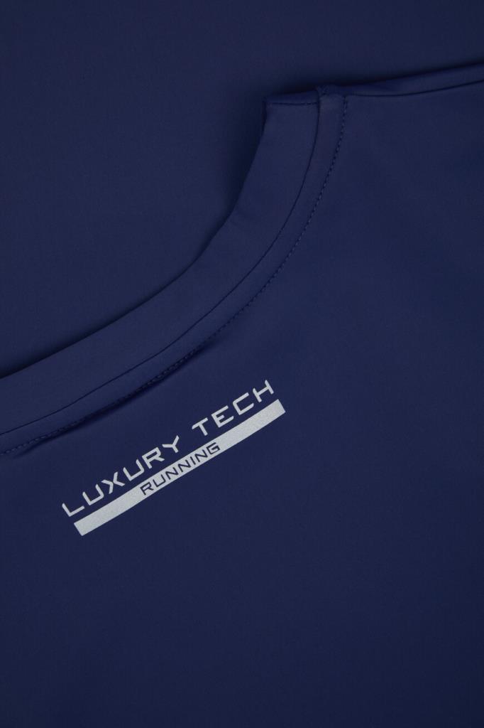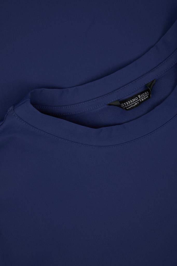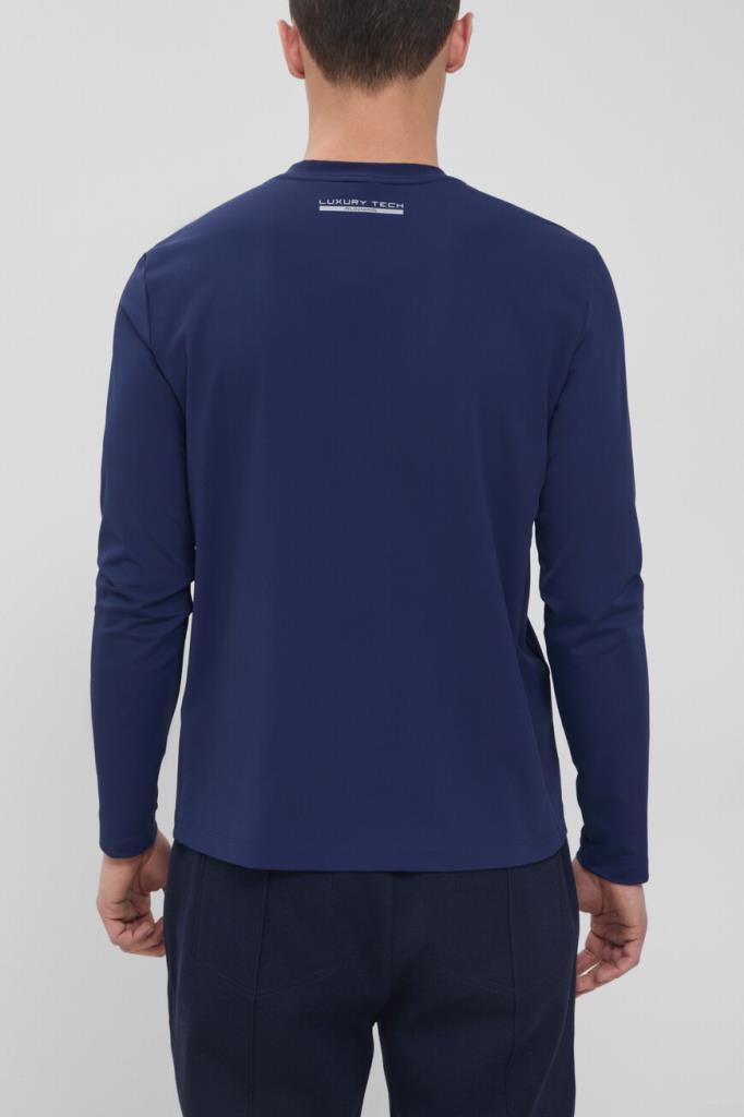 Лонгслив Stefano Ricci с боковыми вставками с перфорацией и принтом в полоску. Изделие выполнено из эксклюзивной технической ткани на основе прочного нейлона синего цвета с добавлением эластичных волокон. Декором выступают чёрная кожаная накладка со знаковой символикой Дома - серебристыми логотипом, восьмигранниками и надписью-названием коллекции SR LUXURY TECH слева на груди и белая надпись «LUXURY TECH RUNNING» на спинке. Модель с длинными рукавами составит органичный комплект с другими предметами спортивного гардероба мужчины.