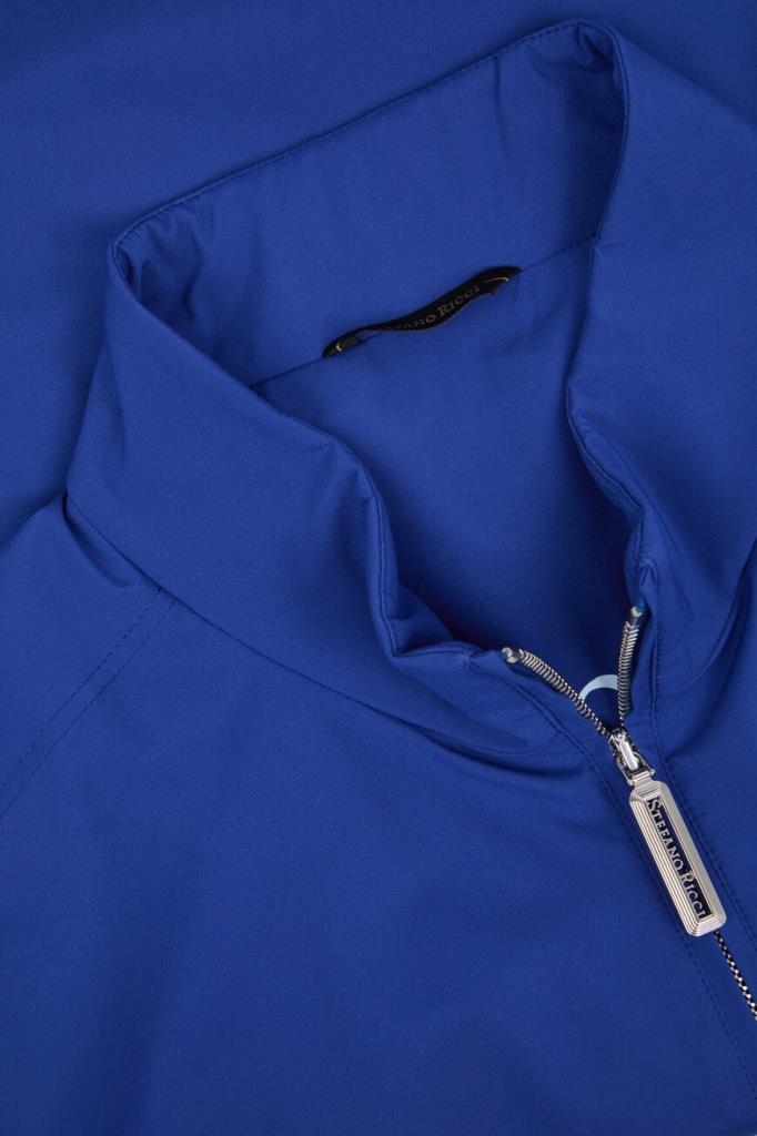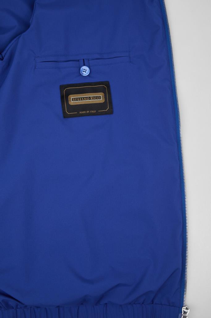 Прямая куртка-ветровка Stefano Ricci с тремя прорезными карманами. Для пошива повседневной модели выбрана премиальная техническая ткань - тонкий износостойкий полиэфир синего цвета с шелковистым блеском. Почти невесомый материал хорошо защищает от моросящего дождя и ветра, поэтому в изделии будет комфортно в непогоду. Куртка застёгивается на встречную молнию с двумя брендированными пуллерами и отличается минималистичным декором: слева на груди присутствует культовый белый патч с головой орла, а на подкладке из того же материала, что и основа, расположена надпись-логотип.